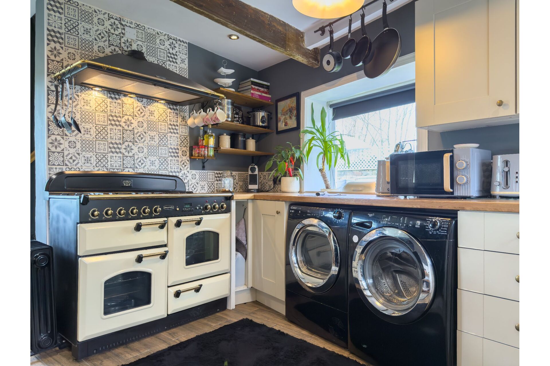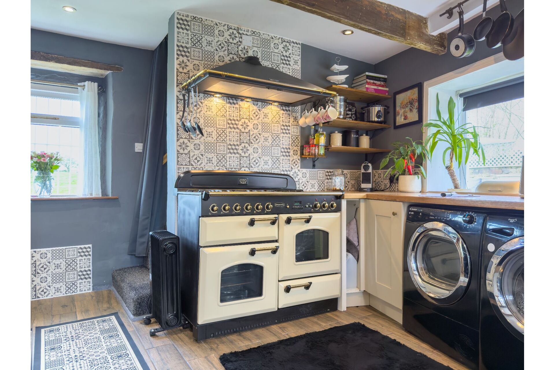 - A high-spec cottage kitchen with a Rangemaster cooker and dual-aspect views.