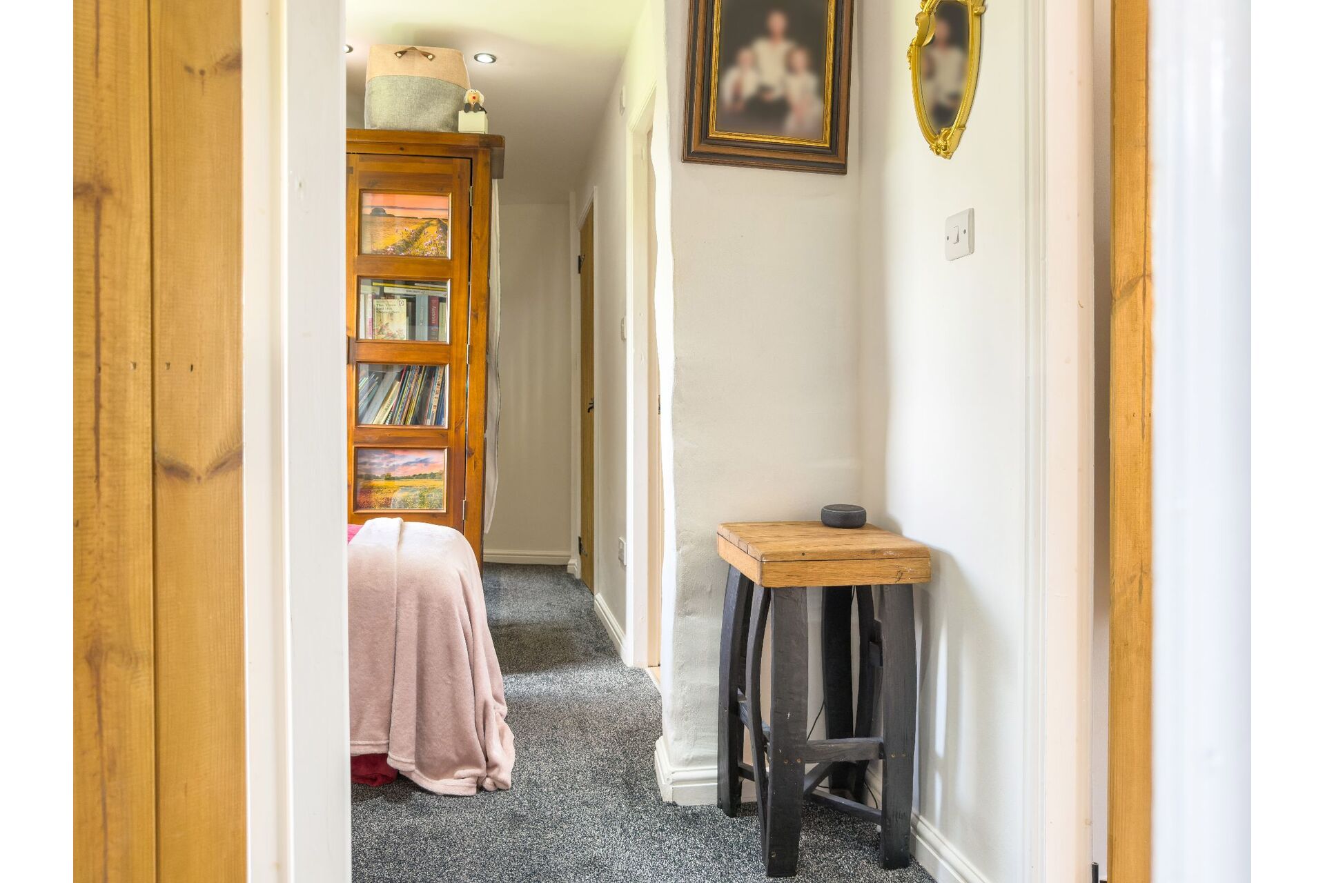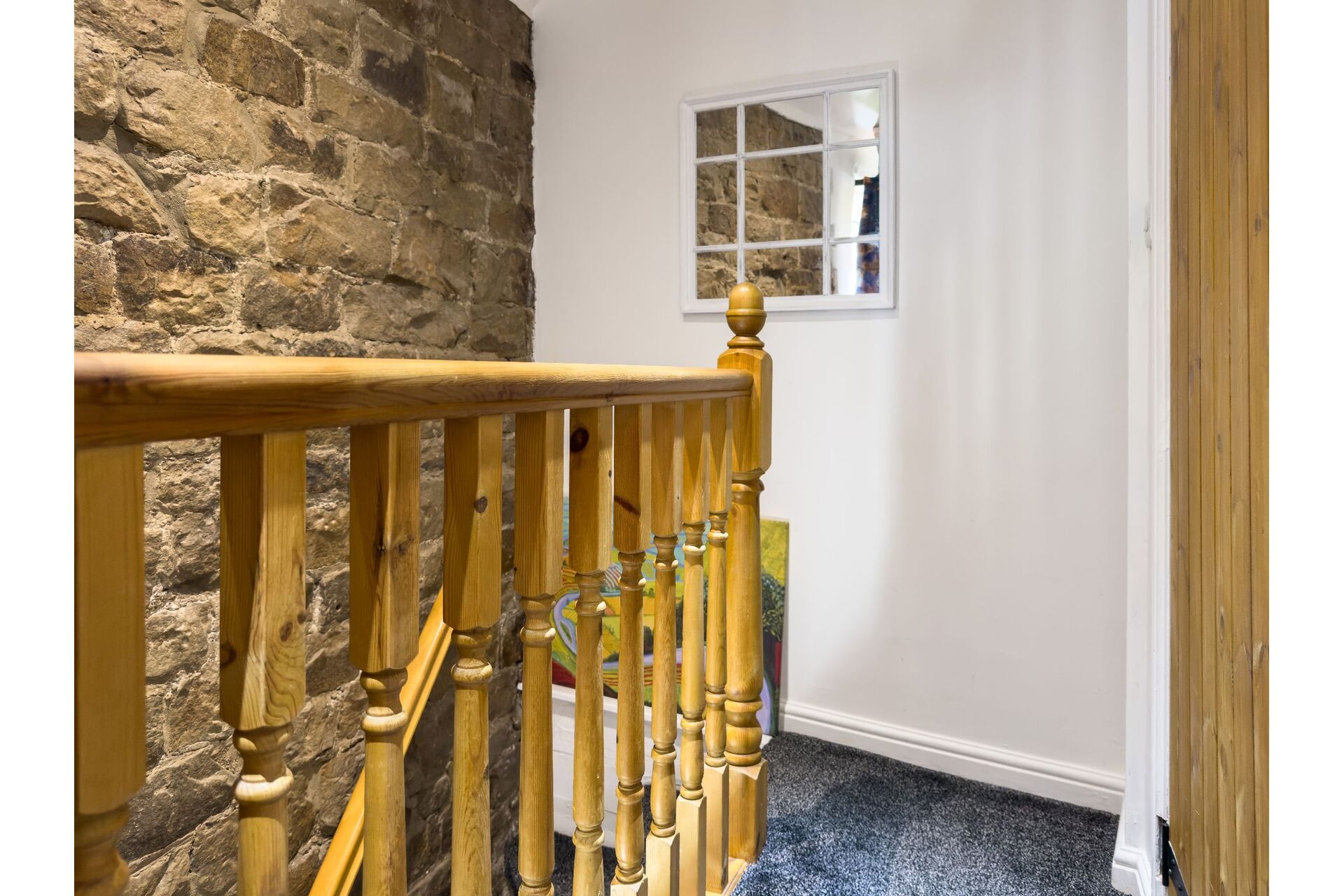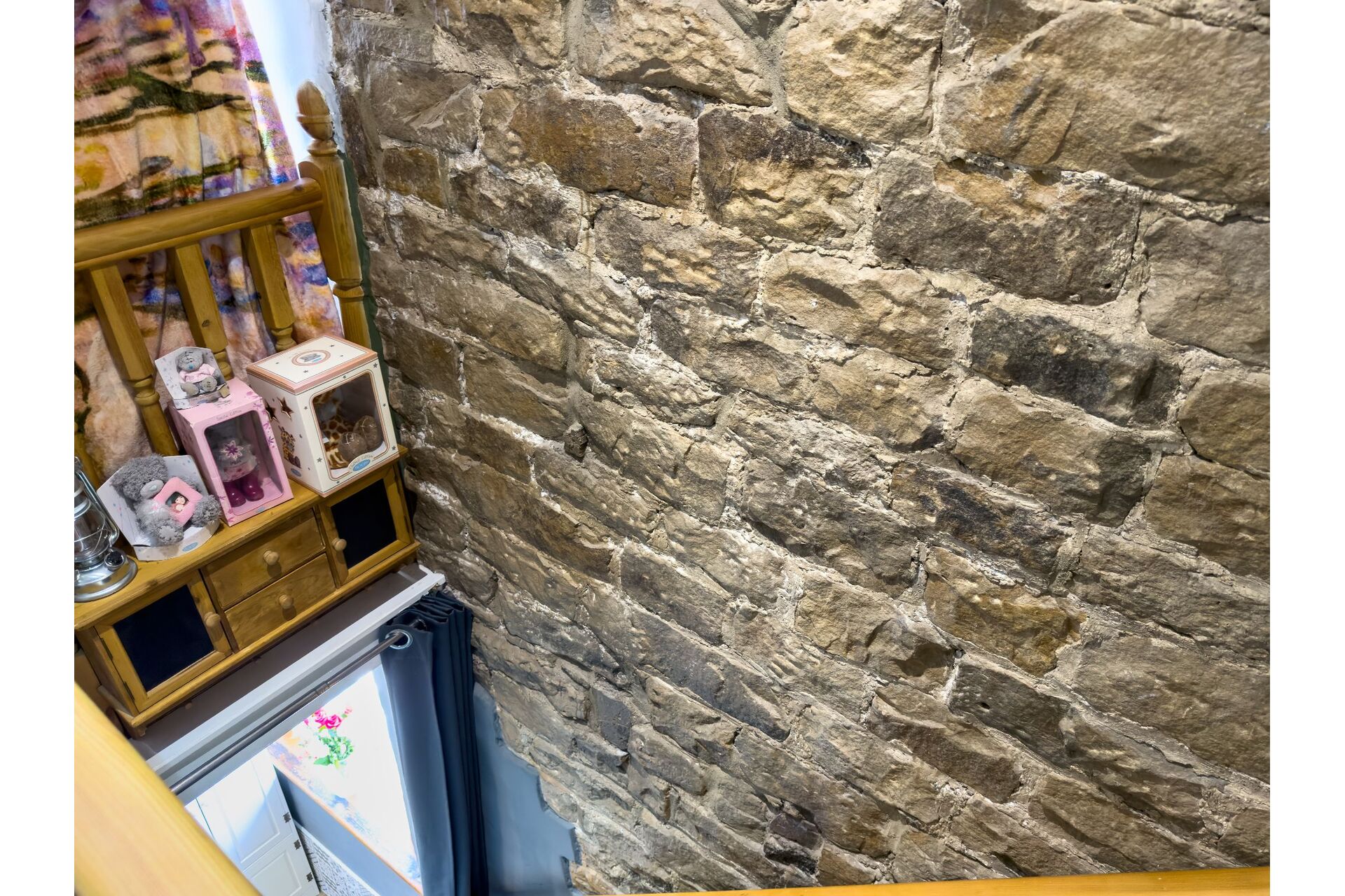 As you climb the stairs to the first floor you will appreciate the exposed stone work on display. There are two convenient storage cupboards and a window that provides open views over the fields to the rear.