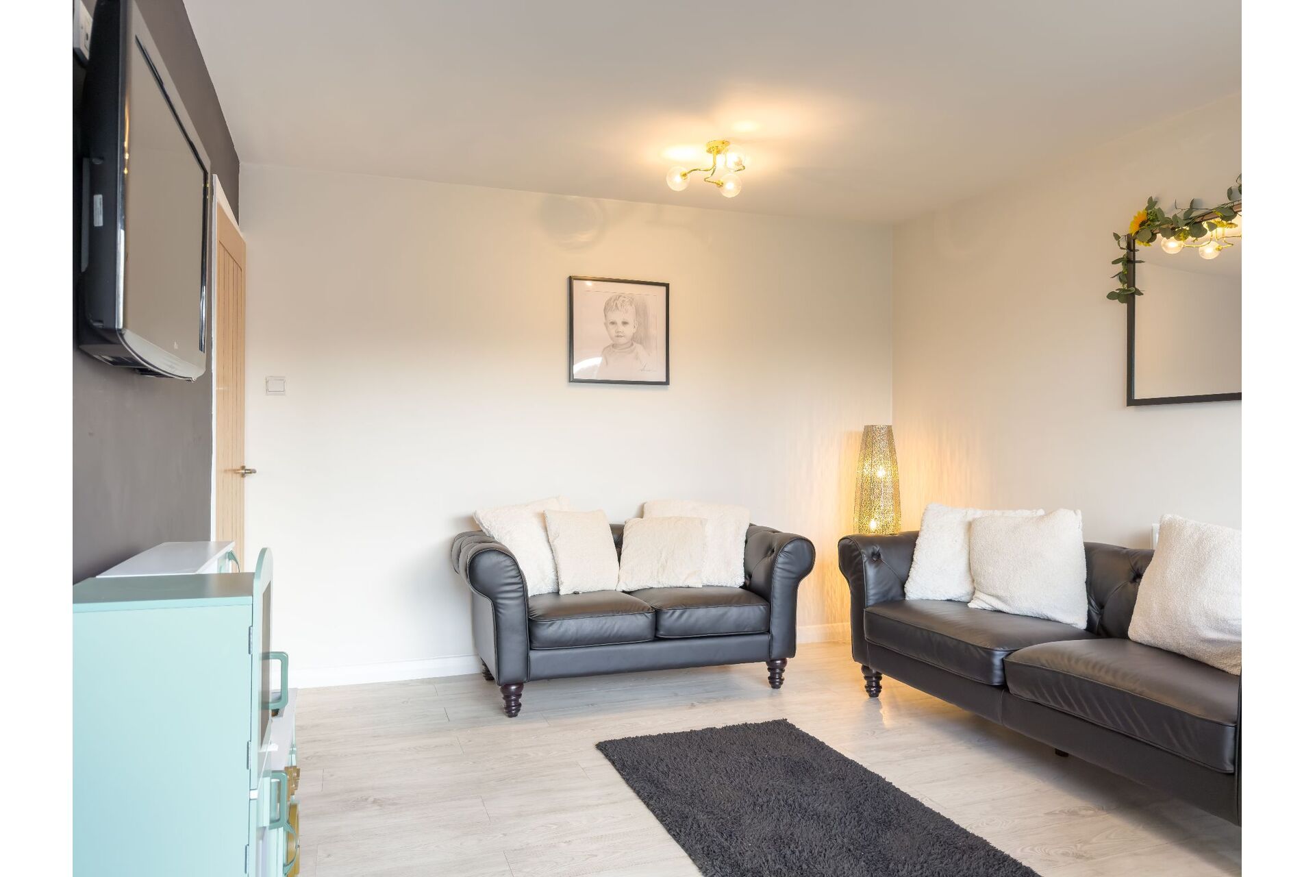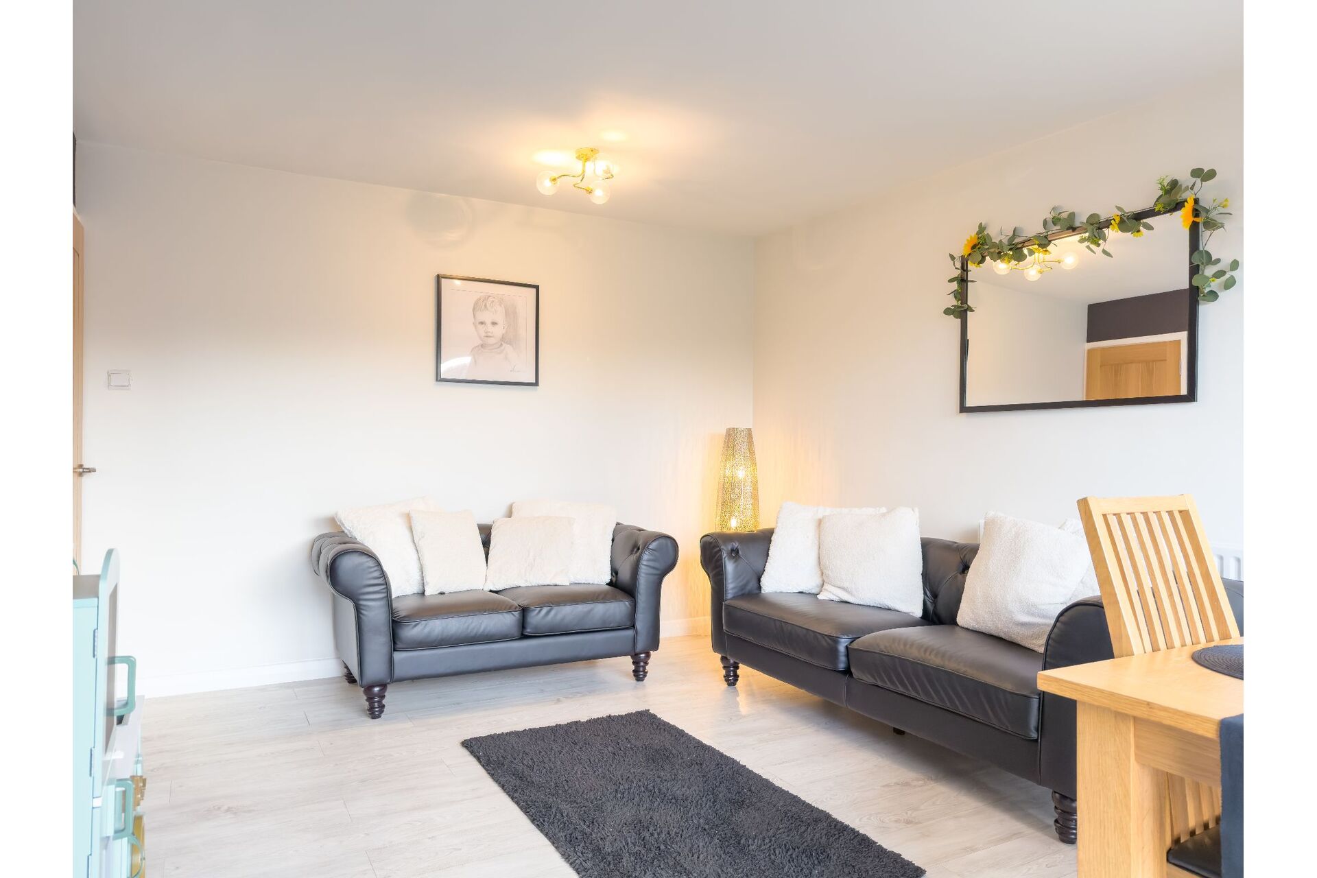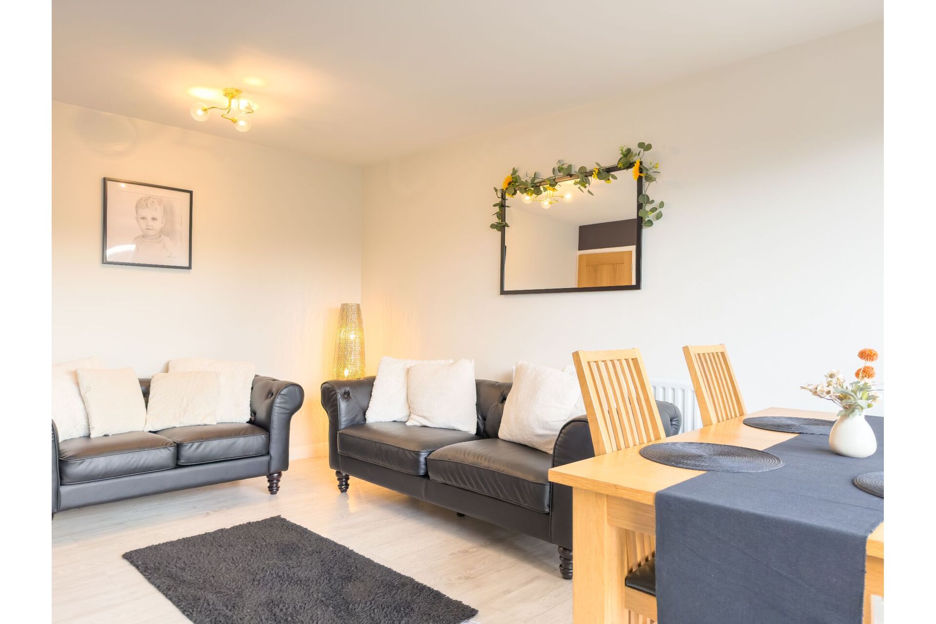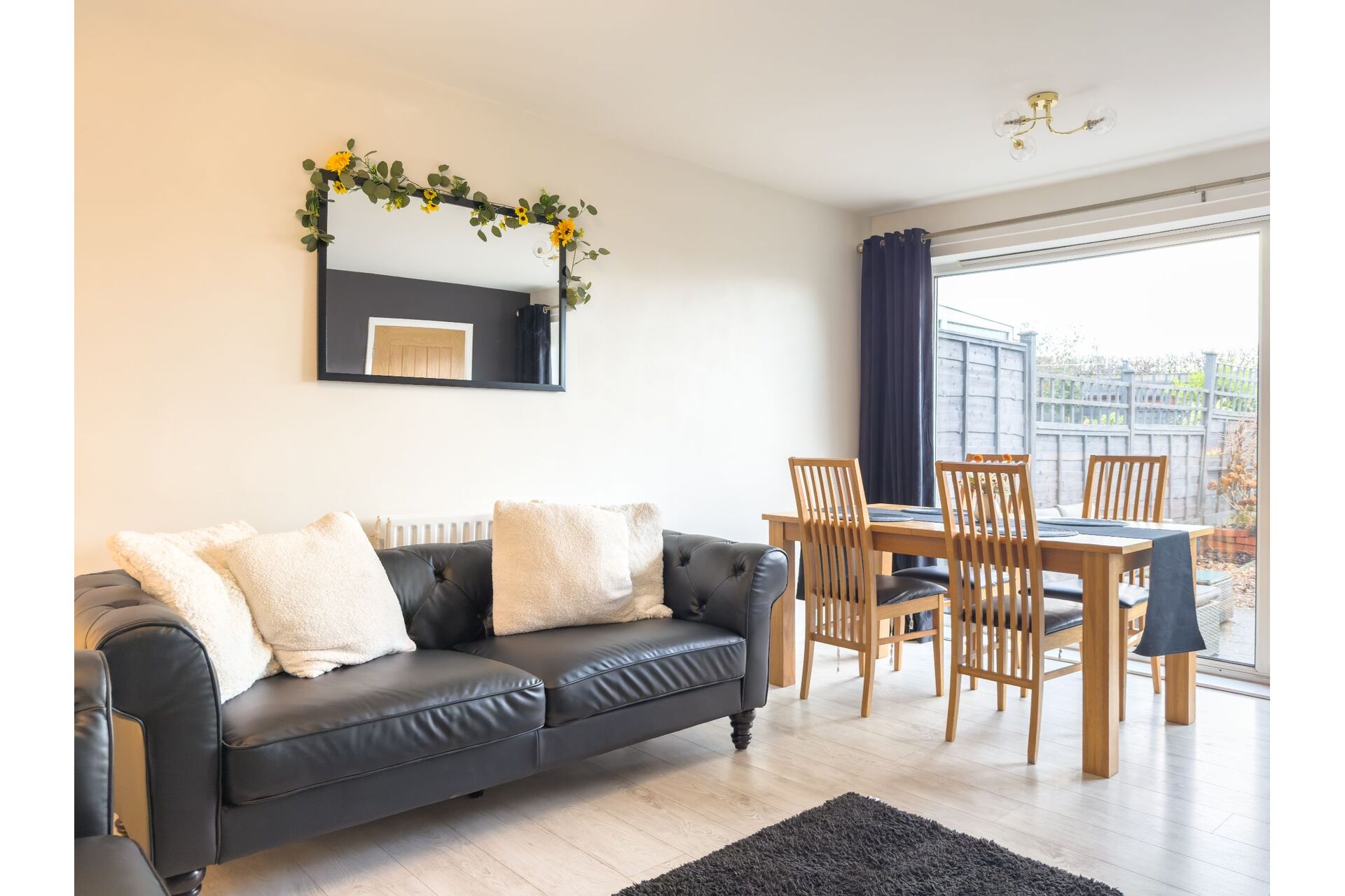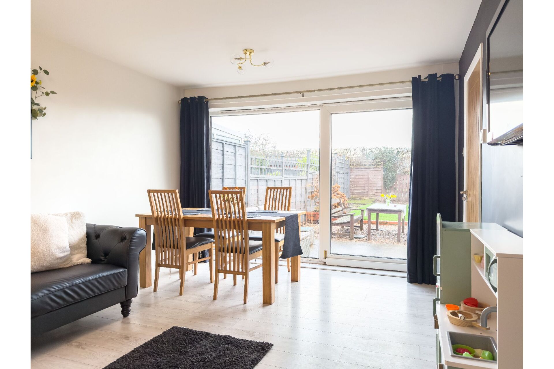 A comfortable living room light and airy having a large full height double glazed incorporating a patio door that provides access to the rear garden and seating area. The lounge is complimented by laminate floor.