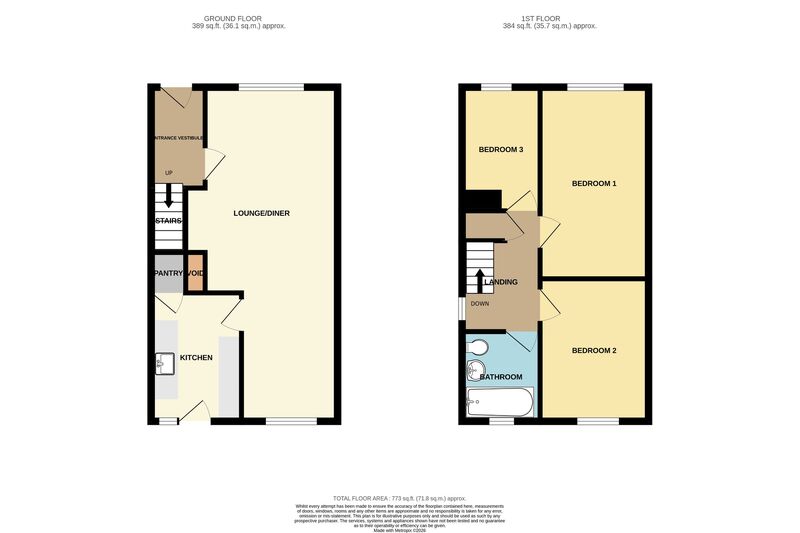 Internal accommodation briefly; Entrance vestibule, lounge diner, kitchen with a pantry, three first floor bedrooms (two double) and a house bathroom. Gardens to both the front and rear with a block paved driveway providing off road parking. A good-sized garage which benefits from an electric door.