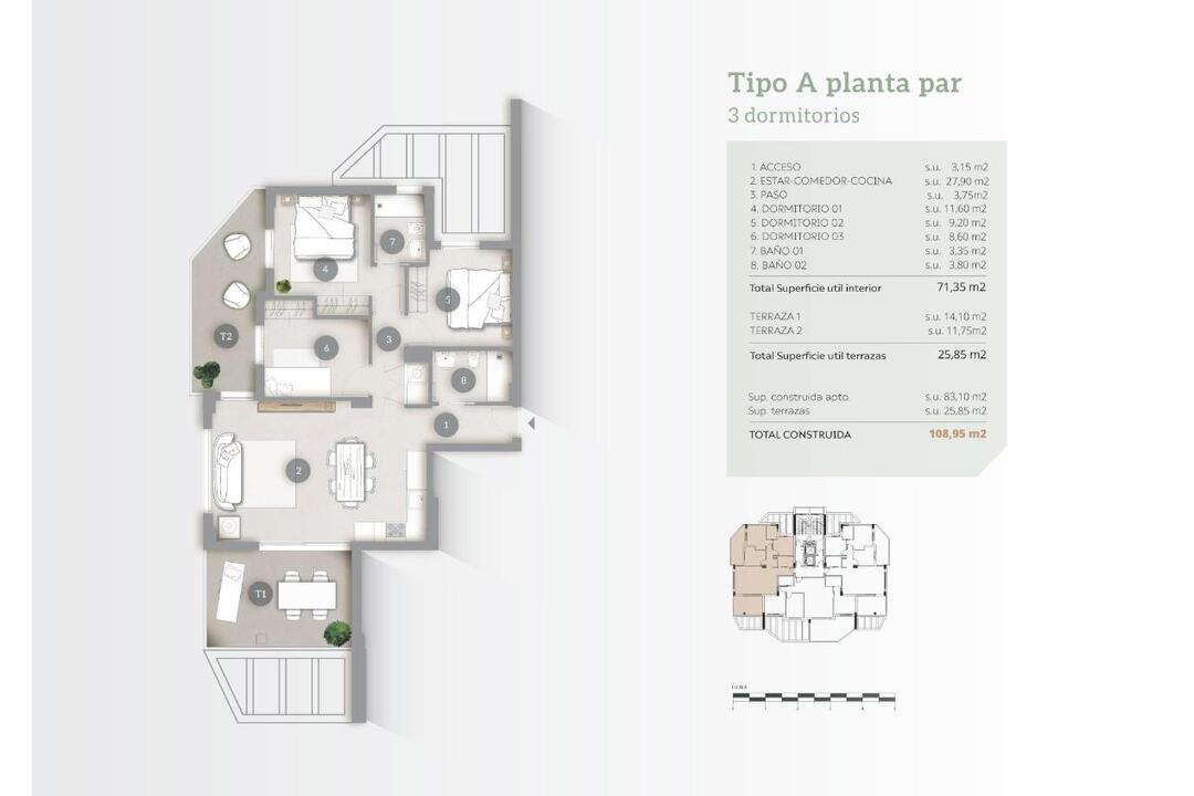 NEW BUILD APARTMENTS IN CALPE New Build residential complex of 2 and 3 bedrooms apartments with large terraces in Calpe. Two towers of 12 floors with beautiful apartments with views of the sea and the salt lake of Calpe. A light-filled house, in harmony with nature, with an open plan kitchen with living room, fitted wardrobes, spacious terraces and sea views. Each apartment has underground parking space. Large common area with 2 large swimming pools, one of them with a beach-type entrance, Sun lounger area with artificial grass, Children's play area, Paddle tennis court, Bicycle parking area, Garden areas. Calpe enjoys a privileged microclimate while the residential located just 200 metres from El Arenal Beach. An ideal spot to revel in the peace, quiet and blue of the sea. With your loved ones, check out everything it has to offer: underwater activities where you can discover the Mediterraneans flora and fauna while practising all kinds of water sports at international schools. Calpe, one of the towns of La Marina Alta, lies on the northern coast of the province of Alicante, surrounded by the towns of Altea, Benidorm, Teulada-Moraira, Benissa. Calpe has a wonderful mixture of old Valencian culture and modern tourist facilities. It is a great base from which to explore the local area or enjoy the many local beaches. Calpe alone has three of the most beautiful sandy beaches on the coast. Calpe also has two Sailing Clubs: Real Club Nutico de Calpe and Club Nutico de Puerto Blanco. Fishing village of Calpe now transformed into a tourist magnet, the town sits in an ideal location, easily accessed by the A7 motorway and the N332 that runs from Valencia to Alicante; its approximately 1 hour drive from the airport at Alicante and 1,5 hours to Valencias airport.