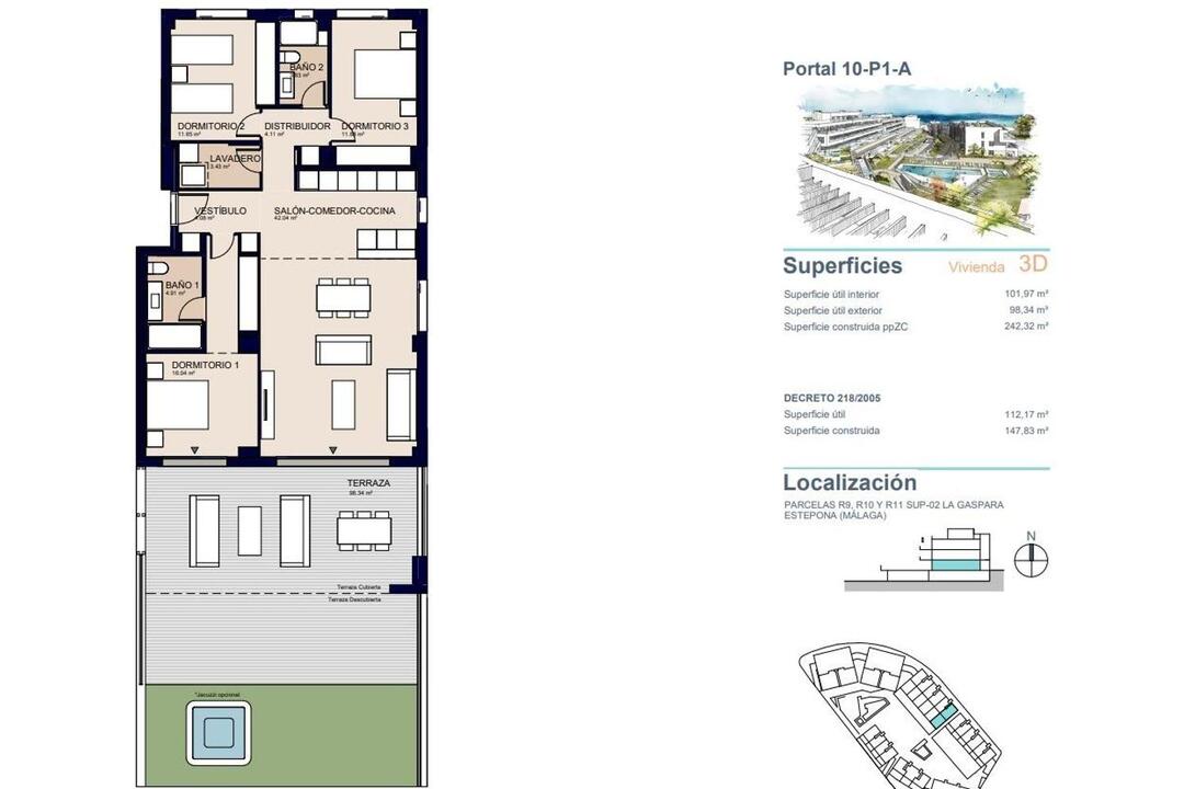 Luxury apartments with sea views in Estepona, just 400 metres from the beach Exclusive project comprising 105 apartments with 2, 3 and 4 bedrooms, designed to offer you maximum comfort and well-being. Located in a privileged setting, this development is the perfect place to find the happiness and relaxation you deserve. The development has excellent facilities, including outdoor swimming pools for adults and children, large green areas to enjoy nature, and a fully equipped gym to keep you in shape. Everything has been designed to provide you with a unique experience of relaxation and enjoyment. Located just a 10-minute walk from the beach, this residential complex allows you to enjoy the proximity of the sea, while in the surrounding area you will find a wide range of restaurants, supermarkets and other services for your convenience. In addition, thanks to its excellent location, the project is well connected to Malaga airport (50 minutes) and Gibraltar airport (45 minutes), making your journeys easier. Beyond your home, but without leaving your residential complex, the communal areas and landscaped gardens include two adult swimming pools, a children's pool, a gym and a social club for your enjoyment. Privileged location with excellent transport links Located in one of the most sought-after areas of Estepona, the complex is: 400 metres from the beach 4 km (approx. 5 minutes) from Estepona marina 20 km from Puerto Bans, Marbella 35 km from Sotogrande 45 minutes (55 km) from Gibraltar International Airport 50 minutes (80 km) from Malaga-Costa del Sol Airport The area has excellent road connections via the A7 and is close to supermarkets, restaurants, international schools and first-class golf courses such as Valle Romano Golf and Finca Cortesn. Exceptional community features for a relaxed lifestyle This gated community offers a wide range of high-end communal areas designed for comfort and leisure: Fully equipped gym Communal swimming pool Social club for residents Bicycle storage area Access control booth and perimeter CCTV security system Enjoy peace and well-being in a safe and quiet environment, perfect for year-round living or as a second home. High-end finishes and energy-efficient design Each apartment is built with quality and sustainability in mind and features: Underfloor heating throughout the property Ducted air conditioning system Aerothermal energy system for maximum efficiency Fully equipped kitchens with top-of-the-range appliances Security doors for added safety Motorised blinds in living room and bedrooms Enjoy the perfect combination of modern design, natural surroundings and luxury amenities in every detail of your home. Live the Mediterranean dream in Estepona. Contact us today to arrange a viewing or request more information about these exceptional new-build homes. 519