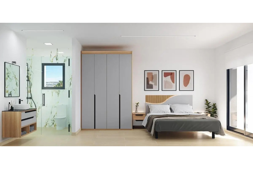 NEW BUILD RESIDENTIAL COMPLEX IN EL RASO New Build closed residential complex of touristic apartments in El Raso, Guardamar del Segura. This new residential complex will consist of 78 touristic apartments and penthouses distributed on the ground floor, first floor, and second floor + solarium. All properties will have a parking space and storage room in the basement, which will be accessible from the community stairs or from the elevator on each floor. The common areas will include a pool area, reception/meeting room, outdoor gym, ptanque area, mini-golf, and spa. DETAILS TO HIGHLIGHT IN OUR NEW DEVELOPMENT: RENTAL-ALLOWED HOUSING: These apartments offer something that no other can in this residential area. You can enjoy your home for 4 months a year for personal use, and the rest of the year it can be rented out, where you can obtain profitability without having to worry about anything, as a specialized rental company will manage everything for you. FULLY FURNISHED HOMES: all the homes in our new project will be fully furnished and ready to live in, with lighting, furniture, appliances, and fully finished bathrooms. VARIOUS TYPES OF HOUSING TO CHOOSE FROM: We offer various types of housing to choose from in different orientations. 2 bedrooms + 2 bathrooms and 3 bedrooms + 2 bathrooms types. All 3-bedroom homes will be corner units, making them even more exclusive for clients. Among these, we offer homes with South, East, and West orientations. All with terraces/porches facing the green area and Laguna de La Mata. UNBEATABLE VIEWS OF THE LAGUNA DE LA MATA: From all the first and second-floor homes in our new development, you can enjoy privileged views of the Laguna de La Mata. Being the last development adjacent to it, you will have a dreamlike panorama of this natural setting. PROXIMITY TO THE BEACH: Just 10 minutes by car or 15 minutes by bike, you can enjoy Moncayo Beach. CLOSE TO SHOPPING CENTERS AND URBAN AREAS: Located just 10 minutes by car from the Habaneras shopping centre, 9 minutes from the dining and entertainment area of Ciudad Quesada, or 8 minutes from the centre of Guardamar del Segura, making our development have an unbeatable location. GOLF COURSES: For lovers of this sport, it's worth mentioning that just 15 minutes by car, you can enjoy one of the best golf courses in Spain, located in the La Finca de Algorfa urbanization. Also, note the beautiful golf courses of La Marquesa and Vistabella, which are 10 and 20 minutes by car respectively. Complex located 30 minutes from Alicante airport and 1 hour Murcia - Corvera airport.