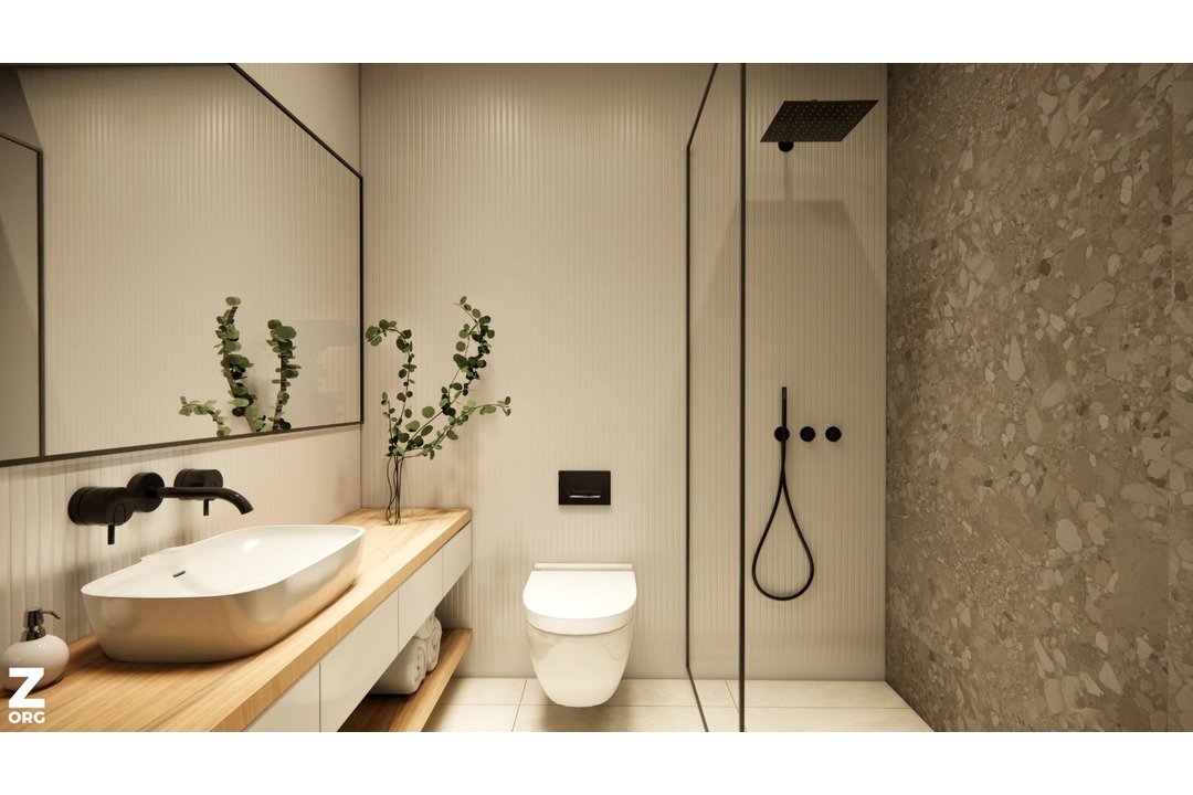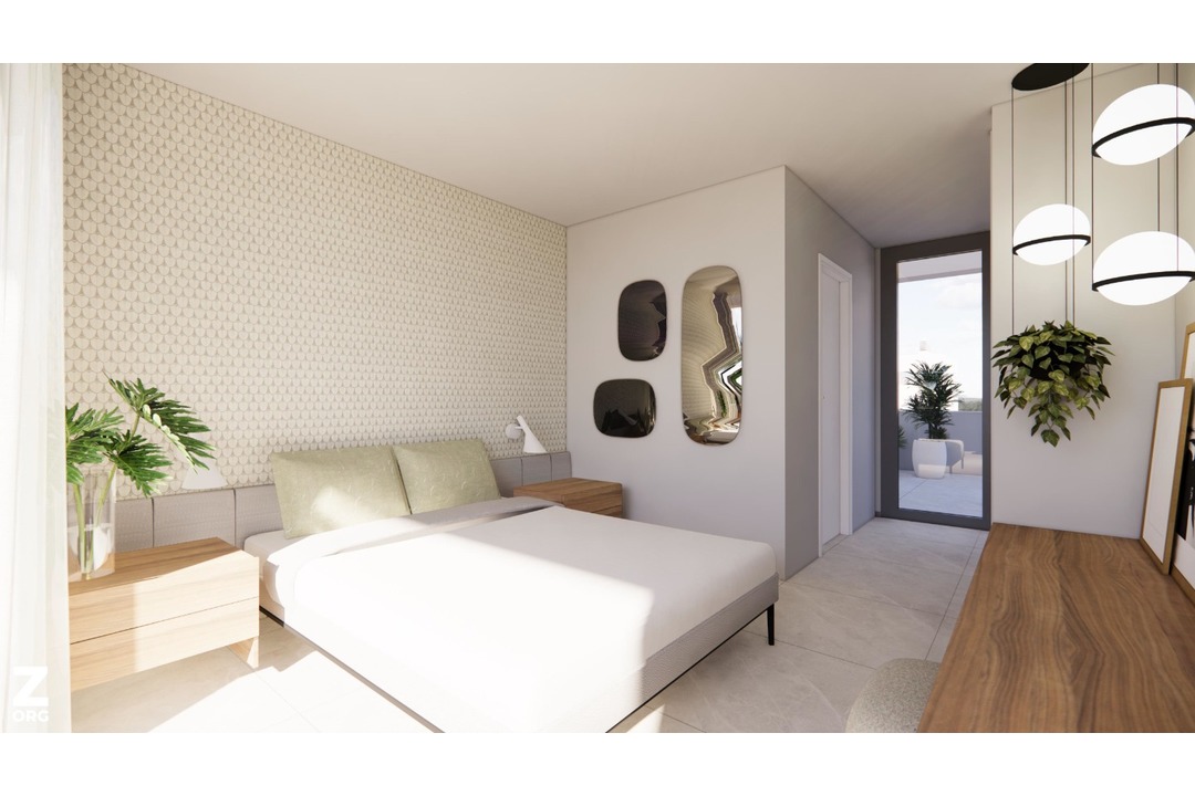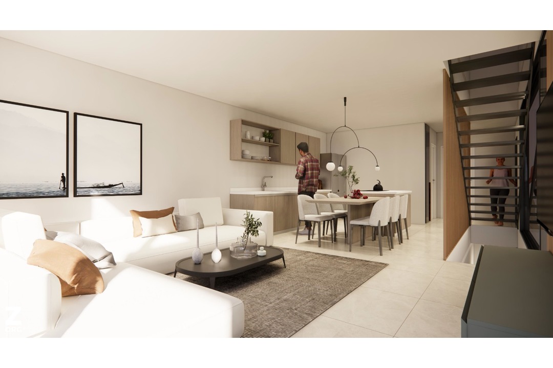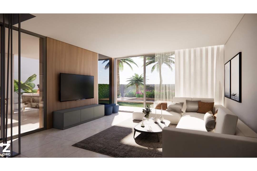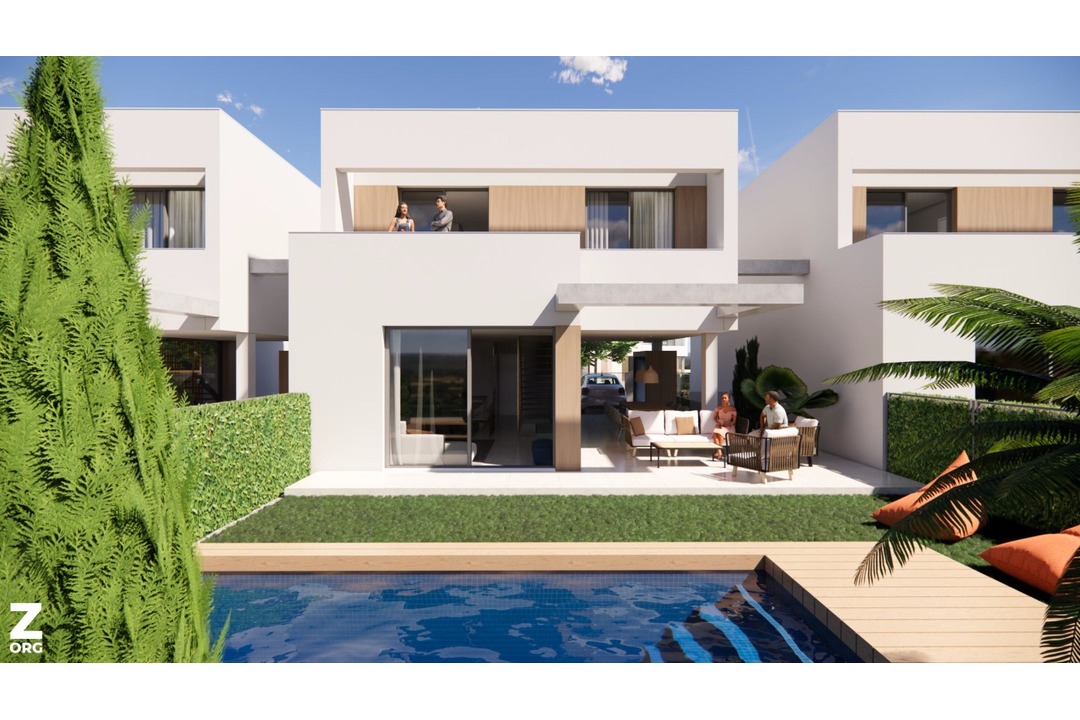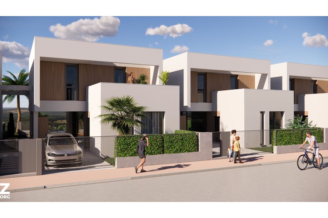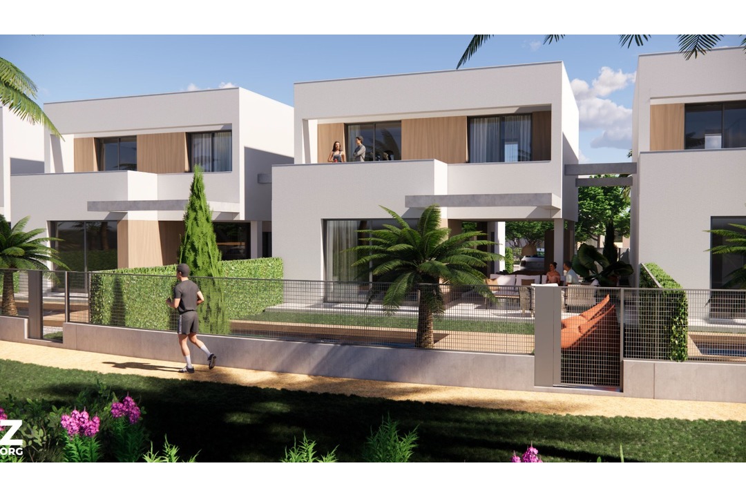 New modern villas located in Santa Rosalia Resort. On the ground floor there is a double bedroom and guest bathroom, open plan kitchen dining and living room leading onto the outside terrace and pool. There is off street parking for one car. Upstairs there are two double bedrooms both with en-suite bathrooms. Upstairs from there you will find the rooftop solarium. There is a 99m2 basement that could be further bedrooms, games rooms, gym etc.