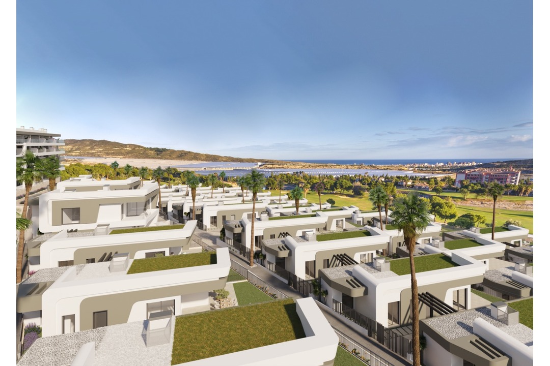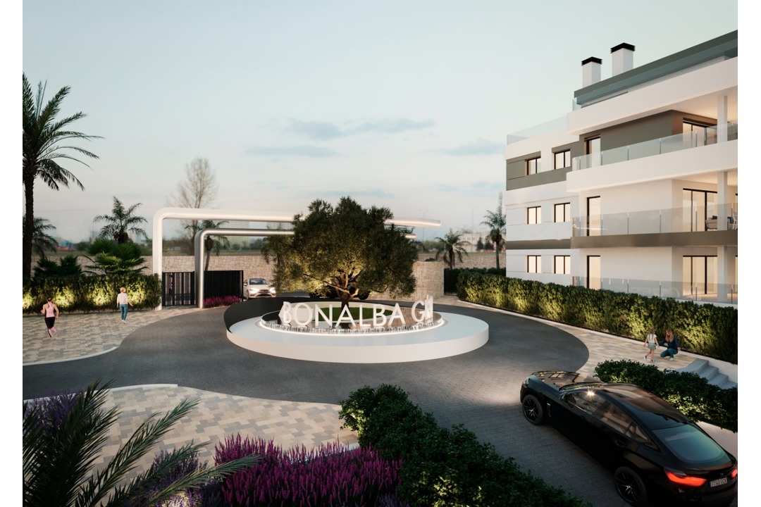 A new development of 2 and 3 bedrooms apartments with large terraces, and 2, 3 and 4 bedrooms villas, located on the Bonalba golf course with stunning sea views near Alicante a short distance from the Alicante Airport. The expansive communal areas include a large fountain covered in blue tile to a pool beach with natural grass, every detail has been carefully designed to offer comfort and aesthetics. Strategically placed furniture to rest and enjoy the views. Small areas of artificial grass and ceramic with an elegant wood tone. Fully fenced residential with video intercom to guarantee security and tranquillity.