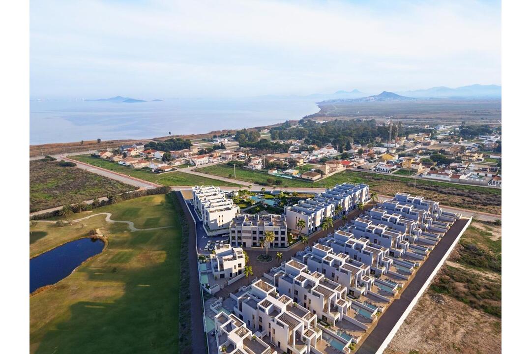 New Build Resort Apartments at La Serena Golf-Los Alcazares Near the Beach Modern Golf Front Living on the Costa Calida Discover this exclusive new build residential resort located at La Serena Golf in Los Alcazares. This contemporary development features 66 stylish apartments with 2 or 3 bedrooms and 2 bathrooms, one of them en suite, designed to offer comfort, elegance and an exceptional Mediterranean lifestyle just 300 meters from the Mar Menor. Los Alcazares is a charming coastal town known for its relaxed atmosphere, sandy beaches and long seaside promenade. With more than 300 days of sunshine per year, the area offers a perfect environment for outdoor living, water sports and golf. The town also provides a wide selection of restaurants, shops, marinas and sports facilities, making it a highly desirable destination for both permanent residence and holiday homes. Apartments with Terraces, Gardens and Private Solariums The residential complex offers several property types to suit different lifestyles. Buyers can choose between ground floor apartments with private gardens, middle floor homes with spacious terraces or penthouses with terraces and large rooftop solariums. The solariums include an outdoor shower and offer the option to add a summer kitchen and private jacuzzi, creating an ideal space for relaxation and entertaining while enjoying open views of the golf course and surrounding landscape. Each home has been designed with bright interiors and open plan living spaces that connect seamlessly with the outdoor areas. Resort Style Amenities and Exceptional Communal Areas One of the most distinctive features of this development is its resort style concept. Residents can enjoy a spectacular lagoon style swimming pool of approximately 190 m2 with beach style access and relaxing areas with Balinese beds. Additional communal facilities include landscaped gardens, a spa area, gym and sauna located in the basement level. The complex also offers a children playground, two petanque courts and communal restrooms near the pool area, creating a welcoming environment for residents and guests. Quality Finishes and Modern Features The apartments are built with modern materials and high quality specifications designed for comfort and style. Fully equipped kitchen with white glass finish appliances Bathrooms with vanity units, shower screens and backlit mirrors Motorized window shutters Basic lighting package Fully installed ducted air conditioning Underground parking space for each property Underground bicycle parking and optional storage rooms Prime Location Close to Beach and Golf Mar Menor beach 0.3 km La Serena Golf next to the development Los Alcazares town center 2 km Cartagena 22 km Murcia 40 km Region de Murcia International Airport 30 km Alicante Elche Airport 90 km The calm and shallow waters of the Mar Menor are ideal for swimming, sailing and paddle surfing throughout the year. Secure Your Home at La Serena Golf Resort These modern apartments combine beachside living, golf views from most units and resort style amenities in one of the most attractive areas of the Costa Calida. Contact us today to receive more information or arrange a visit and secure your new home in La Serena Golf-Los Alcazares.