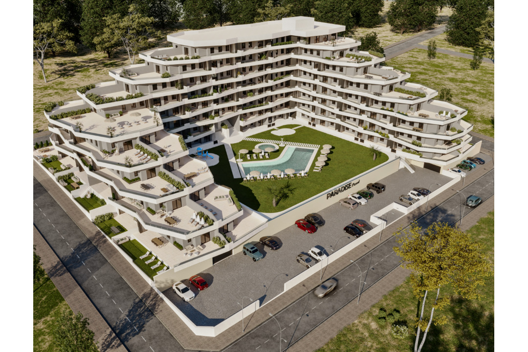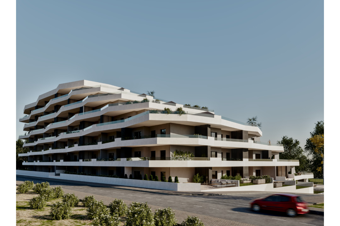 A modern design development of 2 and 3-bedroom apartments with large terraces and private parking (either indoor or outdoor), located in San Miguel.There will be 165 apartments, of which 30 will be penthouses! Walking distance to shops, bars, restaurants and the church square of San Miguel de Salinas and a short drive to the beaches, restaurants and bars. The communal swimming pool will measure an impressive 199 m along with a children's playground and an adult outdoor exercise gym. The first phases to be released will comprise 85 units, on 8 floors. 20 of those units will be 3-bedroom apartments, whilst 65 will be 2-bedroom apartments.
