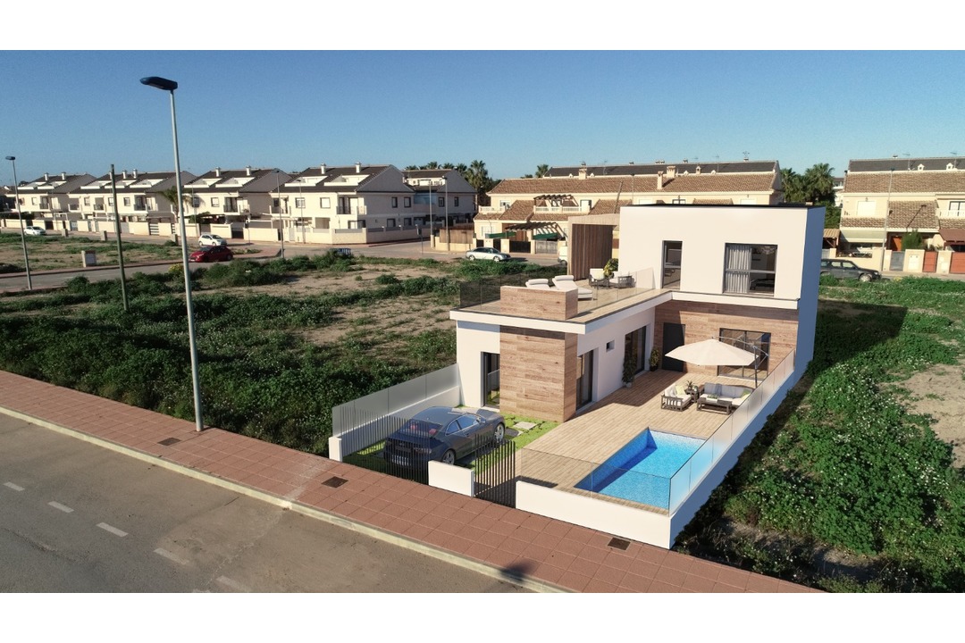 A luxury development of 24 terraced villas with their own private pool and roof top solarium. They have three bedrooms, two bathrooms, a nice garden and off street parking. The properties are located close to the Spanish town of San Javier and just 2 km from the sandy Mar Menor beaches