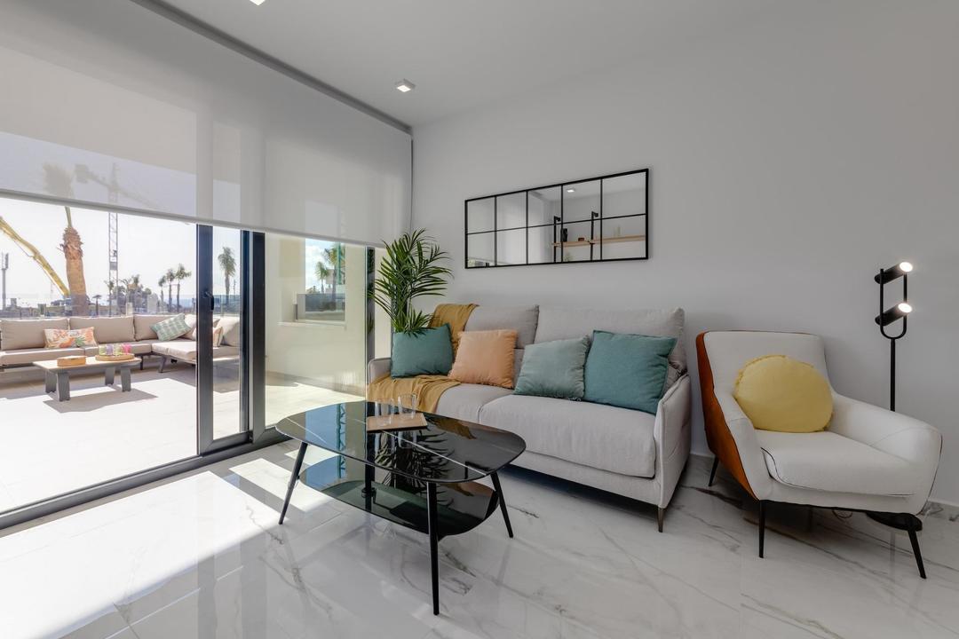 NEW BUILD RESIDENTIAL IN PLAYA FLAMENCA New Build luxury complex of apartments with 2 bedrooms, 2 bathrooms and large terraces located in Playa Flamenca close to the sea. Most apartments have a sea view! You can choose from ground floor apartments with garden, apartments on the first and second floor with terrace, or penthouses (with solarium) on the third floor. All apartments comes with underground parking and closed storeroom. Complex also offers you a communal swimming pool with green areas, a gym with sauna, a childrens playground and a pentaquin area. Playa Flamenca is a quiet beach-side residential urbanization, located 40 minutes drive from Alicante airport and 15 minutes drive from the bustling town of Torrevieja. The urbanisation made of apartments and villas sits on a well-kept, small beach with sun bed hire available during the summer months. Across the main road, inland from the complex, there is a large modern shopping centre with a major supermarket, many restaurant and bars, banks, hairdressers and boutiques. Three championship courses are within a 10 minute drive of the resort, including the fabulous Villamartin, a frequent venue for the Mediterranean Open. The Campoamor Golf Course is set amongst the palm and pine trees and is a beauty; nearby Las Ramblas is another magnificent course and a real test of golf skills.