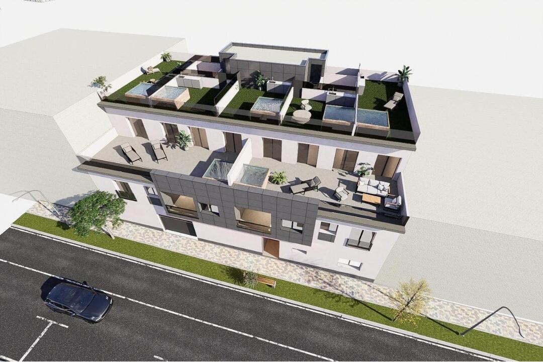 New Build Apartments in Pilar de la Horadada with private Jacuzzi Prime Location in the Heart of Pilar de la Horadada Located in the vibrant center of Pilar de la Horadada, Alicante, this exclusive new development offers an unbeatable combination of modern living and Mediterranean charm. Pilar de la Horadada is a picturesque Spanish town in the southernmost part of Costa Blanca, known for its welcoming community, charming plazas, and proximity to stunning beaches. Apartment Options and Features The residential complex consists of seven meticulously designed apartments, offering a range of layouts to suit diverse needs: Ground Floor: A spacious 3-bedroom apartment including a private rooftop solarium. First Floor: Four apartments featuring 1 or 2 bedrooms, each with individual solariums. Penthouses: Two exclusive 3-bedroom apartments with expansive private terraces. All apartments boast high-end finishes, including: Fully equipped kitchens with modern appliances. Pre-installed ducted air conditioning for your convenience. Aluminum exterior carpentry with thermal break for enhanced insulation. Double glazing (4+14+4 Climalit or similar) for energy efficiency. Stylish bathrooms with suspended WC (Roca Gap or similar), rain-effect showers, and included mirrors and enclosures. Private jacuzzis for each house, perfect for relaxation. Additional Amenities for Elevated Living The development offers: A parking space for each apartment located on the ground floor. An elevator providing access from the ground floor to the solarium level. A summer kitchen in each solarium, ideal for outdoor entertaining. Convenient Access to Key Points of Interest This location provides easy access to essential amenities and attractions: Beaches: The sandy shores of Torre de la Horadada and Mil Palmeras are just 3 km away, a 5-minute drive or a scenic bike ride. Golf Courses: The nearest golf course is 8 km away, perfect for golf enthusiasts. Shopping Centers: Zenia Boulevard, one of the largest shopping malls in the area, is 12 km away. Airports: Corvera (Murcia) Airport is 40 minutes (40 km), and Alicante Airport is 55 minutes (55 km) by car. Discover the Mediterranean Lifestyle Pilar de la Horadada combines the tranquility of a coastal town with the convenience of modern living, offering supermarkets, restaurants, bars, and vibrant plazas within walking distance. Schedule Your Visit Today Dont miss the opportunity to own your dream home in this sought-after area of Costa Blanca. Contact us now to arrange a viewing or for more information!