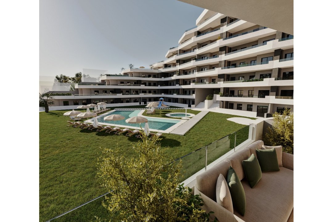 NEW BUILD RESIDENTIAL COMPLEX IN SAN MIGUEL DE SALINAS New Build residential of 165 apartments of 2 and 3 bedrooms, distributed over 7 floors. Fully enclosed residential with communal swimming pools for adults and children, green areas, playground for children and an area for adults with bio-healthy circuit, located on the Costa Blanca in San Miguel de Salinas near golf courses, beach and shopping centres. All apartments comes with parking. An option storage room at an extra cost. Quality specifications: - Fully fitted kitchen with filter group and induction hob. - Porcelanic floors. - Compact blinds. - White laminated wardrobes with mezzanine in bedrooms. - Pre-installation for split air conditioning in living room and bedroom. - Aerothermics. 70% energy saving. San Miguel de Salinas is a municipality in the Valencian Community, Spain. Located in the south of the province of Alicante, in the region of Vega Baja del Segura near the Region of Murcia. San Miguel de Salinas located close to the Las Colinas and Campoamor golf courses, offers exceptional views of the Torrevieja and La Mata lagoons. Alicante airport located 35 minutes drive away and Murcias Corvera airport is about 1 hour drive away.