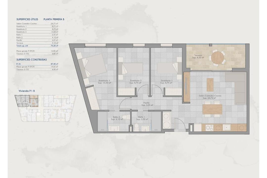New Build Apartments for Sale in Lo Pagan (San Pedro del Pinatar) Near the Beach Modern Mediterranean Living in Lo Pagan Discover these stylish new build apartments for sale in Lo Pagan, a charming coastal area within San Pedro del Pinatar on the beautiful Costa Calida. Located in the well known neighborhood of Los Cuarteros, this residential development offers a privileged lifestyle just 500 meters from the beach and close to all essential services, restaurants, shops and leisure areas. Lo Pagan is famous for its relaxed seaside atmosphere, the calm waters of the Mar Menor and more than 300 days of sunshine each year. The area combines traditional Spanish charm with modern amenities, making it an ideal destination for both permanent living and holiday homes. Contemporary Apartments with Terraces and Private Solariums The development offers a selection of ground floor and middle floor apartments with spacious terraces, as well as exclusive penthouses with private rooftop solariums. The solariums include a pergola and barbecue area, creating the perfect setting for outdoor dining and relaxing under the Mediterranean sun. Each property has been designed to combine contemporary architecture with warm Mediterranean style. The open plan kitchen integrates seamlessly with the living and dining area, creating bright and comfortable living spaces. Large terraces extend the indoor areas and provide the perfect place for outdoor breakfasts or evening gatherings. Bedrooms feature built in wardrobes and the modern bathrooms are fully equipped, offering comfort and elegant finishes throughout the home. Quality Features and Community Facilities These homes are built with attention to detail and include high quality specifications to ensure comfort and efficiency. Fully furnished kitchen equipped with appliances Fully fitted bathrooms with modern finishes Ducted air conditioning fully installed Private parking space and storage room included with every property Residents can also enjoy excellent communal facilities including a swimming pool surrounded by relaxation areas and a fully equipped gym, ideal for maintaining an active lifestyle all year round. Excellent Location on the Costa Calida This development enjoys a strategic location close to beaches, golf courses and key destinations along the coast. Playa de Villananitos 0.5 km Real Club Nautico de Lo Pagan 0.5 km Lo Romero Golf 10 km Murcia International Airport 40 km Cartagena 35 km The nearby beaches of the Mar Menor such as Playa de La Puntica are known for their fine sand calm waters, ideal for swimming, sailing and water sports. Your New Home by the Sea Awaits Enjoy sunshine, beaches and a vibrant coastal lifestyle in one of the most sought after areas of the Costa Calida. Contact us today for more information about these new build apartments in Lo Pagan and secure your place by the sea.