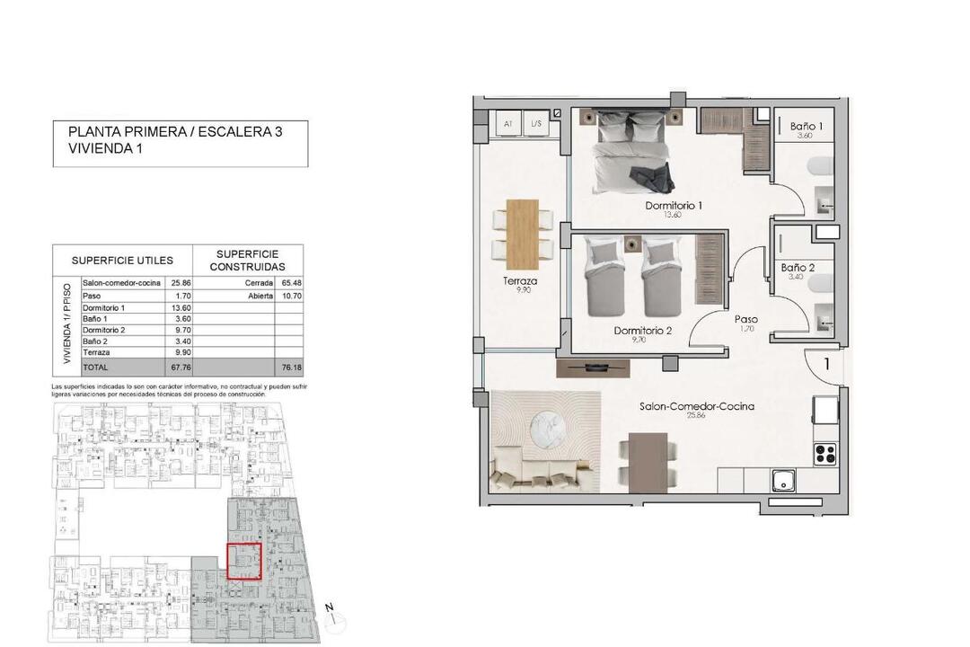 NEW BUILD RESIDENTIAL COMPLEX IN SANTA POLA New Build modern gated residential complex consisting of 1, 2 and 3 bedroom apartments and penthouses with 2 complete bathrooms. The complex consists of 4 staircases of flats with spacious landscaped communal areas, including swimming pool, relaxation area and gymnasium. All properties have been carefully designed to provide you with an exceptional living experience, with high quality finishes and a modern style. Enjoy the spacious terraces, where you can relax, enjoy al fresco dining and watch the most spectacular sunsets. The location is simply unbeatable: next to the centre of Santa Pola and the palm grove, and only a few minutes from the promenade, you will be close to a wide range of restaurants, bars and supermarkets. Excellent connection with the national road 332, which connects all the southern Costa Blanca, and with the airport in only 15 minutes.