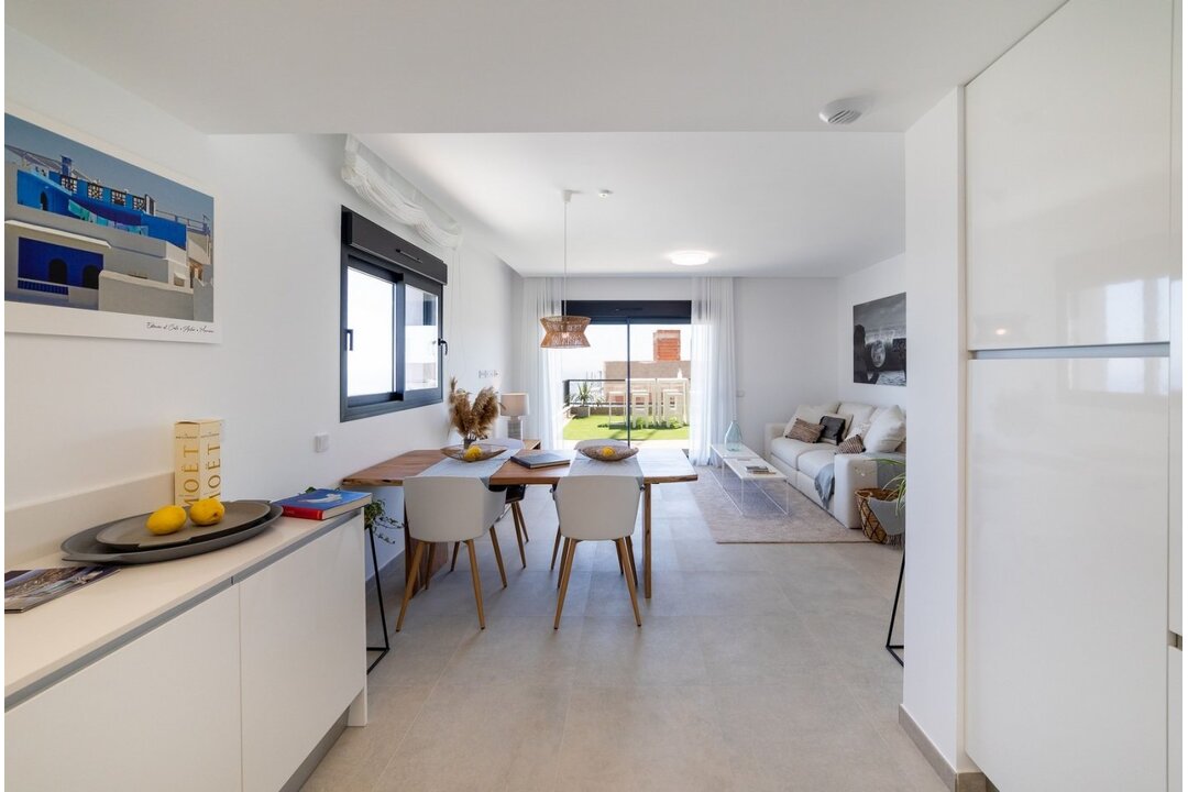 NEW APARTMENTS FOR SALE IN GRAN ALACANT, AT 20 MINUTES FROM ALICANTE and ELCHE, COSTA BLANCA New development with 170 apartments in Gran Alacant, with views of the Mediterranean Sea and direct access to the blue flag beach of El Carabassi. The 2 and 3 bedroom, 2 bathroom apartments have a carefully designed distribution and enjoy beautiful views of the sea, the beach and the pool and private gardens at the development. These new apartments are built to a very high standard and form a lovely residential with pool, private underground parking, storeroom, garden areas, outdoor fitness equipment, parking area for bicycles and a childrens play area. The development is just a 15 minutes walk from the beach at El Carabassi. The natural surroundings, a magnificent location between the towns of El Altet and Santa Pola, and the stunning sand dune beaches make the new Iconic apartments from Taylor Wimpey Espaa one of the best possible choices if you wish to buy a home on the Costa Blanca. Developer with over 60 years building homes in Spain. Property typologies: Apartment, Penthouse, Groundfloor Includes: Underground parking, Storeroom, Communal swimming pool, Communal garden, Utility room, Air conditioning, Heating