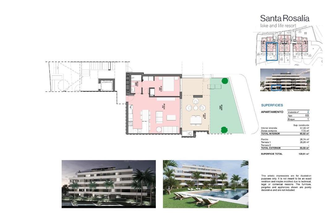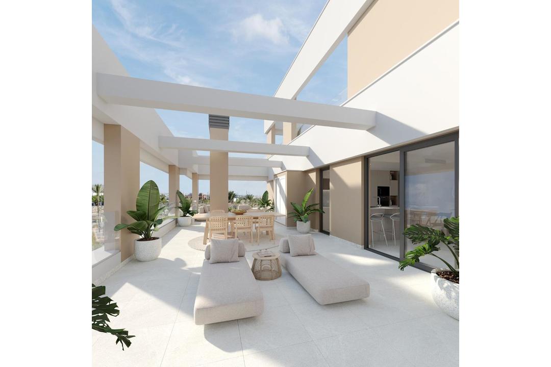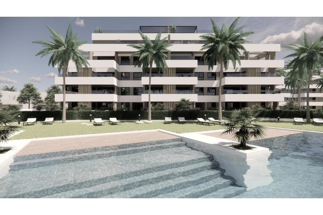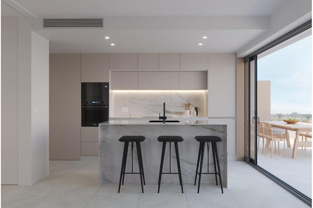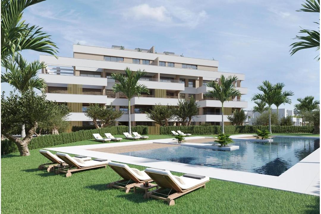RESIDENTIAL COMPLEX OF NEW CONSTRUCTION IN PRIVATE URBANISATION IN THE PROVINCE OF MURCIA. Residential complex of newly built flats in private urbanisation with 24h security. Beautiful properties with 1, 2 and 3 bedrooms and 1 or 2 bathrooms, open plan kitchen with spacious living room, fitted wardrobes, terraces overlooking the green areas of this large luxury resort. The complex has a communal swimming pool and all properties have parking space and storage room. Located in a private gated complex, with a main entrance and 24 hour security. The complex is designed around an impressive green area of 126.000 m2. It has walking and cycling paths, sports facilities, paddle and tennis courts, a mini-golf course, gardens, dog parks, leisure areas, clubhouse..... Also in the central area is the jewel of the complex, an artificial lake of crystalline waters of almost 17.000m2 of water surface, surrounded by white sandy beaches and palm trees, bringing a piece of the Caribbean to the Region of Murcia. There are 2 islands in the lake, one of which has its own bar, there are also "Chiringuitos de playa" (beach bars) scattered around the lake. The complex is strategically located less than 4 km from the beach and the town of Los Alcazares, where you can practice various water sports, surrounded by several golf courses, the city of Cartagena less than 15 minutes by car and 22 km from the airport of Murcia.