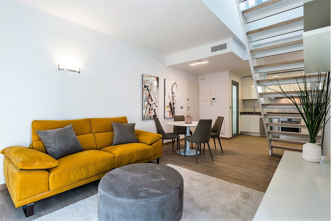 A new development just 300 m from the sea with garden areas, sauna, jacuzzi and several swimming pools, one of them heated. It consists of 57 properties of 2 and 3 bedrooms, duplex, semi-detached with storage rooms all having high quality finishes and with large terraces and / or solarium, bright living rooms, designed under bioclimatic criteria and garage space included in the price. Villa Amalia in front of the urbanization La Veleta is excellently located, near Torrevieja town centre, supermarkets, restaurants, General Hospital and a wide range of beaches around. It is perfectly connected to the large shopping centres of the area and with Alicante Airport only 40 minutes away by car. Prices From 215.000