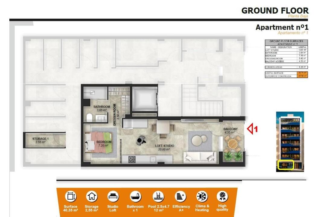 New Build Apartments 200 Metres from the Sea in Torrevieja Modern Homes in a Prime Location Discover this new development in the heart of Torrevieja, just 200 metres from Acequin Beach, one of the most popular beaches in the city. This residential building has 11 homes distributed in a quiet environment, ideal for those looking to live near the sea without giving up urban amenities. The location offers walking distance to the centre of Torrevieja, parks, restaurants, supermarkets and all the services you need for everyday life. Distances to key points: Acequin Beach: 0.2 km Torrevieja town centre: 0.7 km Marina Salinas marina: 1.5 km Torrevieja University Hospital: 5.5 km Villamartn golf course: 10 km Habaneras Shopping Centre: 3 km Alicante Airport: 45 km Different Types to Suit All Needs The building offers a selection of studios, 1 and 2 bedroom apartments, and penthouses with large private terraces. All homes have a storage room included on the ground floor and access to modern communal facilities that enhance the level of comfort and lifestyle. Communal Areas for Wellbeing and Enjoyment The roof terrace of the building has been designed as a premium communal area with: Swimming pool Solarium Sauna Barbecue area Perfect for enjoying the Mediterranean climate of Torrevieja all year round. High-end finishes in every home The homes have been built with top-quality materials and contemporary design: PVC exterior carpentry with Guardian Sun double glazing Motorised blinds with thermal insulation Security entrance door with lock Kitchen equipped with wall and base units and integrated appliances: ceramic hob, oven, microwave, extractor fan and dishwasher Hot water produced by aerothermal system Fully installed air conditioning LED lighting Lift in the building Live a stone's throw from the sea and the town centre Torrevieja is one of the most dynamic and growing coastal towns on the Costa Blanca, famous for its climate, beaches, salt flats and cultural life. This development is ideal as a permanent residence, investment or second home for holidays. Contact us today for more information or to arrange a viewing and secure your home by the sea in Torrevieja.