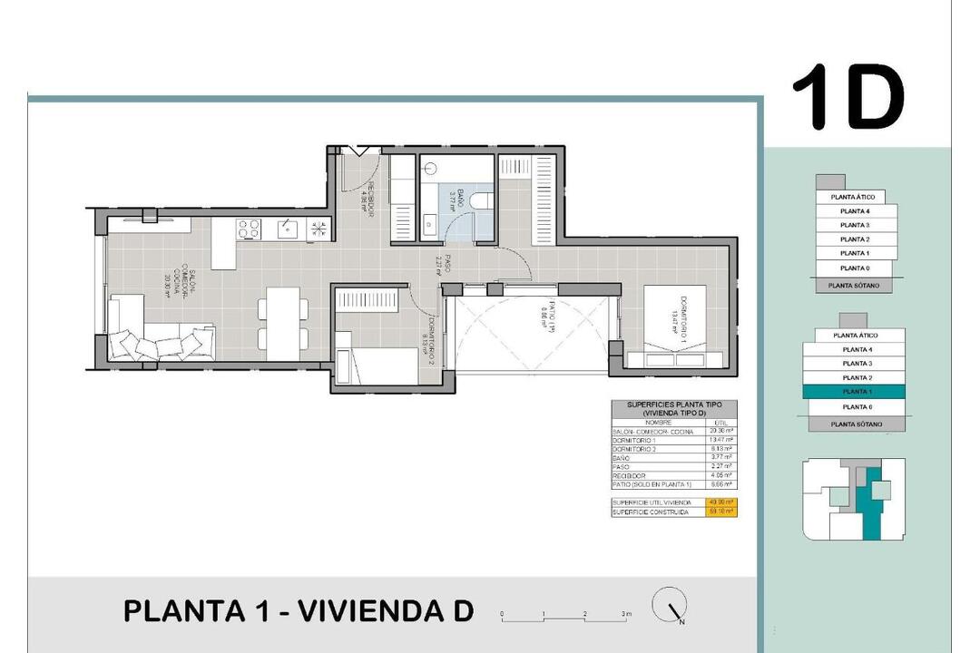 Stylish Residential Building 60 m away from El Acequion Beach at Torrevieja 23 Functional Homes with a selection of 1, 2 and 3 bedroom apartments, and penthouses with large private terraces. Optional parking spaces at underground for additional convenience. Enjoy life just steps from the Mediterranean. Surrounded by everything you need supermarkets, schools, restaurants, parks, and beach bars making it the perfect place to live year-round or enjoy as a second home. Each unit is thoughtfully designed to maximize natural light, space, and functionality with some houses with private terraces or laundry rooms. On the rooftop, residents can enjoy a communal solarium with a relaxing lounge area and a swimming pool, perfect for soaking up the sun and sea breeze all year round. Distances to key points: Acequin Beach: 60 m Torrevieja town centre: 500 m Marina Salinas marina: 1.5 km Torrevieja University Hospital: 5.5 km Villamartn golf course: 10 km Habaneras Shopping Centre: 3 km Alicante Airport: 45 km High-end finishes in every home The homes have been built with top-quality materials and contemporary design: Exterior carpentry in aluminium with thermal break and double glazing Motorised blinds at bedrooms. Armoured entrance door Kitchen equipped with wall and base units Hot water produced by aerothermal system Air conditioning pre installation Baths with furnitures, mirrors and fixed glass at showers. Lift in the building Live a stone's throw from the sea and the town centre Torrevieja is one of the most dynamic and growing coastal towns on the Costa Blanca, famous for its climate, beaches, salt flats and cultural life. This development is ideal as a permanent residence, investment or second home for holidays. Contact us today for more information or to arrange a viewing and secure your home by the sea in Torrevieja.