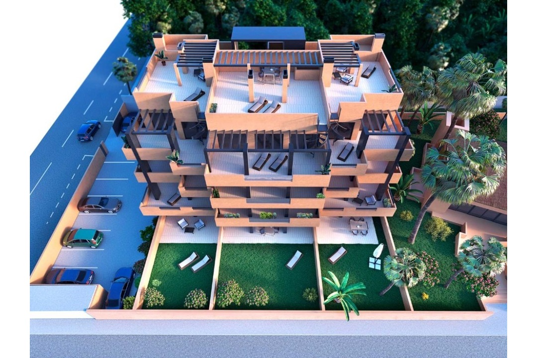 These new apartments have 2 bedrooms and 2 bathrooms. The ground floor apartments come with a large private garden and the upper apartments have spacious terrace. The penthouses come with private solarium, and in addition, each of them have a parking space. All homes are very good quality and come with pre-installation of A / C, electric shutters, underfloor heating in bathrooms. The complex also has large exterior areas with garden and community pool. Located in the middle of three golf courses and close to La Zenia beach and shopping centre, this is an idea location for all activities.