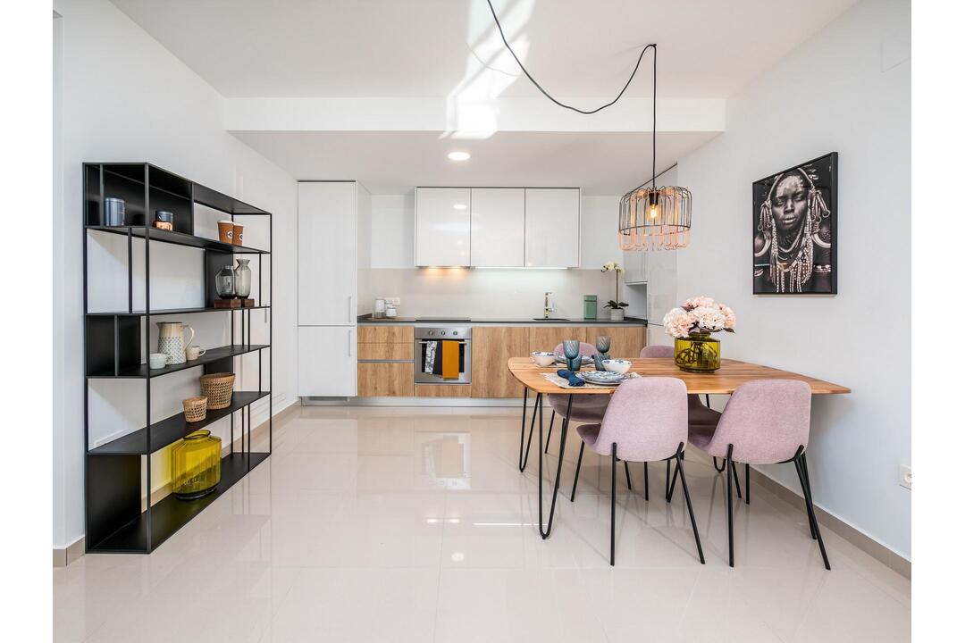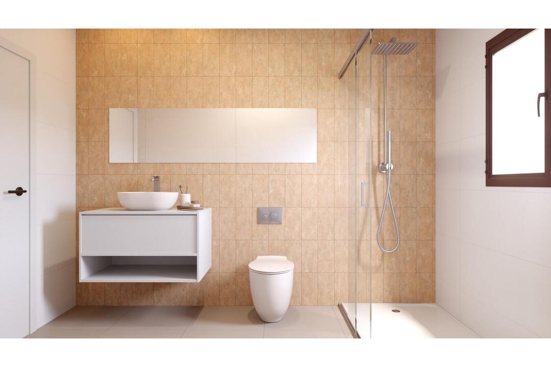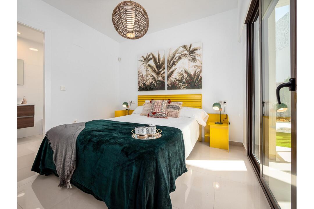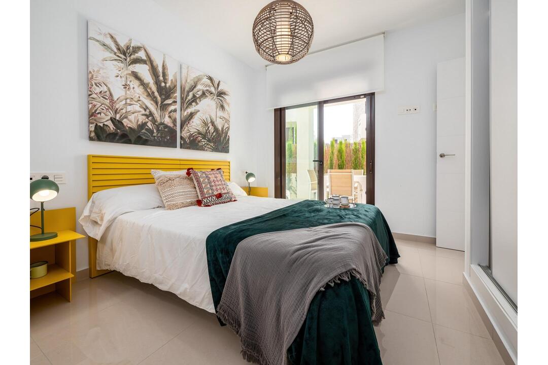 NEW BUILD RESIDENTIAL IN LA FINCA GOLF New Build residential complex of bungalow apartments and townhouses in La Finca golf. Modern bungalows has 2 bedrooms, 2 bathrooms, open plan kitchen integrated with the living area connecting the bedrooms, bathrooms and terrace. Ground floor bungalows has terraces and gardens, top floor bungalows has terraces and solariums on the upper floor. Its south orientation provides natural lighting at any time of the year and natural heating from dawn to sunset, which reduces energy consumption. The opened concept properties with windows and sliding doors that allows cross ventilation and lets the light in. The properties are situated so, that the light can enter everywhere, but at the same time it offers some fresh and cozy corners. New development takes place on an incredible plot where homes have been implemented with a careful design and large spaces to achieve maximum comfort. Its design focuses on the comfort and well-being of its residents and combines contemporary style and Mediterranean character, inheriting traditional morphology with the use of stones on the faade and canopies. Kitchens will be delivered fully furnished with a current design of high-capacity high and low furniture. The base units are in white matte lacquered laminate and the upper units in melamine wood with texture on the columns. Semi-hidden handle profile with gola* system. Countertop in work area and peninsula Quarz Compac Blanco Luna or similar. Armoured main door with white lacquered finish on the interior leaf and brown texture on the exterior. Optical peephole and security lock. White lacquered interior doors, with a three-strip front and rectangular stainless steel handlers. Built-in wardrobes with white sliding doors. Windows and sliding doors in brown aluminium carpentry with a textured finish. Tilt-and-turn windows in bathrooms, with frosted effect glass and manual blinds. Electric and motorized blinds, finished in brown textured aluminium. All blinds are connected to the home automation system and are synchronized to close and open, and can be operated from the App. Special double glazing with solar control and low emissivity, to make the most of natural light and save on energy costs. Optimal aesthetic appearance, exceptional colour and minimal reflection. Energy certification class A Properties offers a high level of energy certification. This is possible thanks to the thermal insulation of roofs and walls, the aluminium joinery with double glazing, and the installation of 5 solar panels by block The homes are equipped with electrical and telecommunications outlets required by the Low Voltage Electrotechnical Regulations. Intercom for communication between the home and the main entrance. We include an advanced home automation system to control the motorized blinds and three light points. Legrand Valena Next series mechanisms that can be connected to the home automation system. Air-conditioning pre-installation: central or split depending of the model. Fully fitted alarm system with one sensor by room, touch panel and siren. New development is located at La Finca Golf. It is placed next to the first line of golf facing the 11th fairway at La Finca Golf course, one of the most emblematic complexes in the southeast of Spain and a common refuge for golf lovers. Located just 4 minutes from Algorfa, in Costa Blanca South, this complex with indoor parking, community pool and garden areas is the perfect place for those who want to enjoy the Mediterranean lifestyle: proximity to the beach, golf and mountains, surrounded by tranquillity, but with access to all types of services and leisure areas. Few minutes away from the most beautiful beaches of the southern Costa Blanca and places of exceptional beauty such as the Laguna Rosa de Torrevieja or the Dunes of Guardamar del Segura. Its proximity and easy access to the AP-7 highway and main national roads connect complex with numerous towns on the Costa Blanca such as Orihuela, Cartagena, Elche, Murcia and Alicante. The airports of Alicante and Murcia are less than 30 minutes driving with connections to the main European capitals.