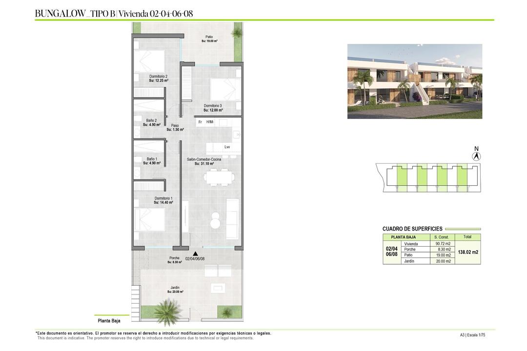 NEW BUILD BUNGALOW APARTMENTS IN CONDADO DE ALHAMA GOLF COURSE New Build exclusive complex of 18 bungalows apartments in Condado de Alhama. Beautiful bungalows with 2 or 3 bedrooms and 2 bathrooms,been designed with the wellbeing and quality of life of their inhabitants in mind. Residential offers spacious communal areas, including several communal swimming pools, one of which is heated, where you can enjoy moments of relaxation and fun. In addition, the complex has landscaped areas for strolling and enjoying the surroundings, as well as parking areas designed for the convenience of residents. The ground floor bungalows have 3 bedrooms and generous gardens, ideal for spending time outdoors and organising get-together with family and friends. The top floors, on the other hand, have 2 bedrooms and a spacious solarium that allows you to make the most of the sunlight and views of the natural surroundings. Condado de Alhama Golf Resort is a fantastic Golf Resort with many facilities and services . A shopping centre, a sports centre, a variety of bars and restaurants, supermarkets and over 25 communal swimming pools and gardens. Condado de Alhama Golf Resort has its own Jack Nicklaus designed golf course and is only 15 minutes from the beautiful beaches of Bolnuevo and Mazarron. Mazarron has over 35 km of coastline, much of which is unspoilt coastline. Numerous beaches in the Bay of Mazarron have been awarded the Blue Flag for their quality. Condado de Alhama Golf Resort is only 20 minutes from the new Corvera International Airport.