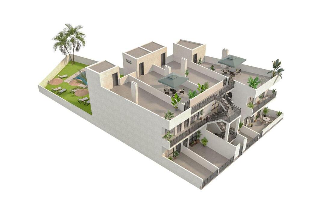 New Build Homes in La Canalosa with Communal Pool Rural Tranquillity with Modern Amenities Welcome to this exclusive residential development in La Canalosa, a charming hamlet in Hondn de las Nieves, Alicante. This new-build development offers a peaceful lifestyle surrounded by nature, with all the amenities you need to enjoy everyday life. With a total of 8 homes with 2 bedrooms and 1 bathroom, it is the ideal option for those seeking peace, comfort and connection with the natural environment. Property Types to Suit All Tastes The ground floor properties have front terraces and rear patios, and three of them offer space to park your car within the private plot. The upper floor properties have a private solarium with storage room, ideal for enjoying the sun all year round and the excellent Mediterranean climate that characterises the area. Specifications and Features Each home has been designed with a practical and modern approach: Pre-installation of ducted air conditioning Security entrance door Bathroom cabinet with mirror High-quality exterior carpentry The residential complex also has a communal swimming pool surrounded by landscaped areas, perfect for relaxing and enjoying time with the family. Natural surroundings and healthy lifestyle La Canalosa is the ideal destination for those who value a simple, healthy lifestyle surrounded by nature. Its rural landscapes invite you to take walks in the open air, go hiking, cycling or simply enjoy the silence and beauty of the surroundings. Just a few minutes away, Hondn de las Nieves offers additional services, local history and a renowned wine tradition. Distances to points of interest Local school: 0.1 km Sports facilities: 0.3 km Medical centre: 3 km Central market: 4 km Golf course: 16 km Shopping centres: 17 km Elche: 26 km Alicante: 26 km Alicante-Elche Airport: 33 km Costa Blanca beaches: 38 km Invest in Wellbeing and Nature This development represents an excellent opportunity to acquire a modern home in a unique and well-connected rural setting. Perfect as a main residence, holiday home or investment with great potential for capital appreciation. Contact us today to schedule your visit and discover your new home in La Canalosa.