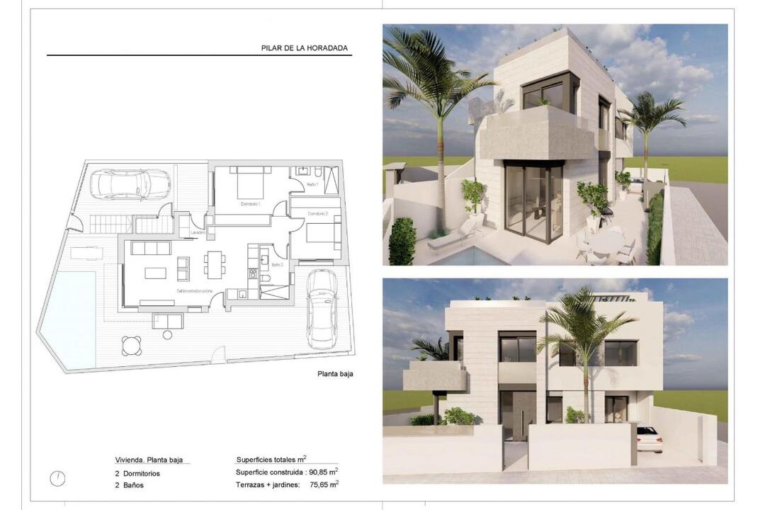 Exclusive New Build Bungalows with Private Pool in Pilar de la Horadada Modern Living in a Prime Costa Blanca Location Discover an exclusive new development of only two premium bungalows located in the heart of Pilar de la Horadada, a charming coastal town in the Costa Blanca known for its fine sandy beaches, peaceful ambiance and Mediterranean lifestyle. The residential complex is situated just 2.5 km from the beach and within walking distance of supermarkets, shops, restaurants and essential daily services. With excellent road connections and Alicante Airport only 45 km away, this location offers the perfect balance between tranquility, comfort and accessibility. Two Unique Homes Designed for Comfort The project features two elegant 2 bedroom, 2 bathroom homes, designed with high quality finishes and modern layouts. One of the bathrooms is ensuite, providing additional privacy and convenience. Each property offers its own distinctive outdoor living experience to match different lifestyle preferences. Ground Floor Bungalow with Spacious Garden and Private Pool The ground floor unit includes a generous 75 m2 garden ideal for outdoor dining, sunbathing and leisure. A private pool is included, along with private parking inside the plot. Large windows and open spaces create a bright and welcoming atmosphere throughout the home. Penthouse Bungalow with Private Solarium and Pool The upper floor residence offers a fenced parking space on the ground level and access via an exterior staircase. It boasts a spacious terrace and a private rooftop solarium with its own swimming pool, creating an exclusive retreat for enjoying the Mediterranean climate and open views. Lifestyle in Pilar de la Horadada This coastal municipality is known for its calm and relaxed atmosphere, beautiful beaches such as Mil Palmeras and a wide range of outdoor activities. Snorkelling, diving, coastal walks and cycling are part of the everyday lifestyle enjoyed by residents and visitors alike. Nature lovers will appreciate the proximity to the San Pedro Salt Lakes, located approximately 12 km away, offering scenic landscapes and wildlife. Distances to Key Points of Interest Beach: 2.5 km San Pedro Salt Lakes: 12 km Lo Romero Golf: 6 km Alicante Airport: 45 km Murcia Airport: 40 km Torrevieja: 20 km Secure Your Exclusive Home Today Take the opportunity to own a unique property with exceptional outdoor spaces in one of the most desirable areas of the Costa Blanca. Contact us today to arrange a visit and reserve your new home in Pilar de la Horadada.
