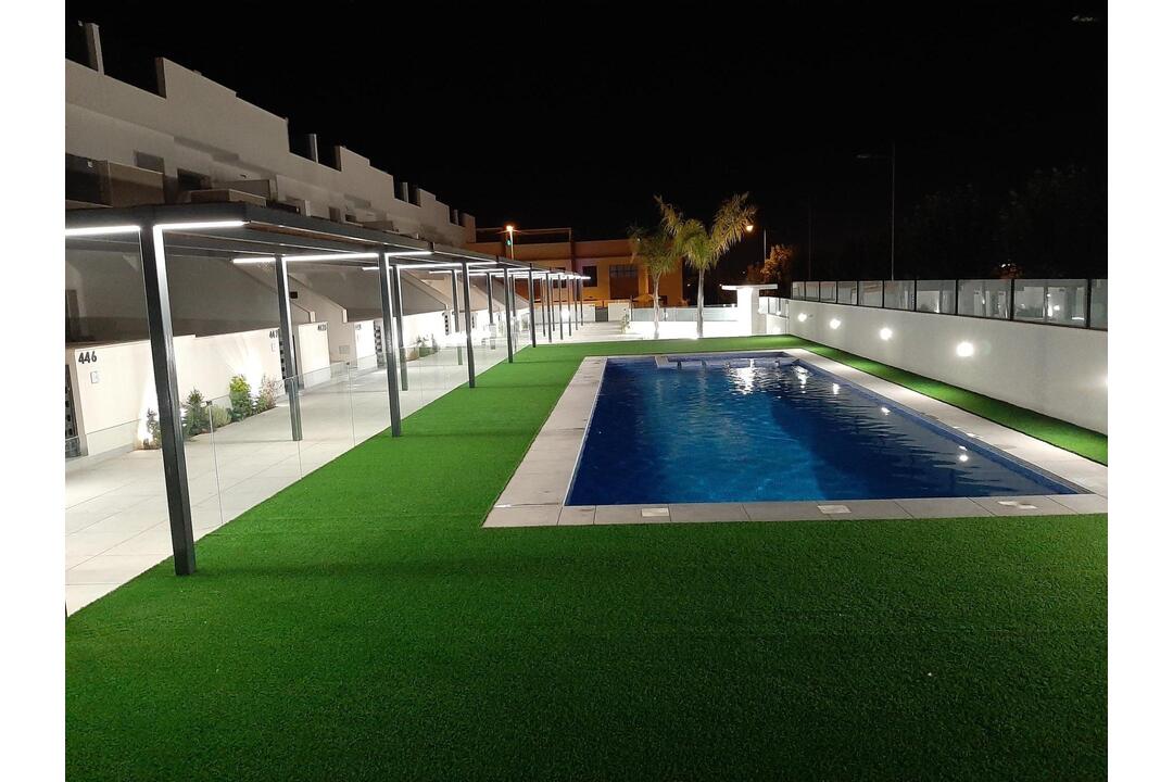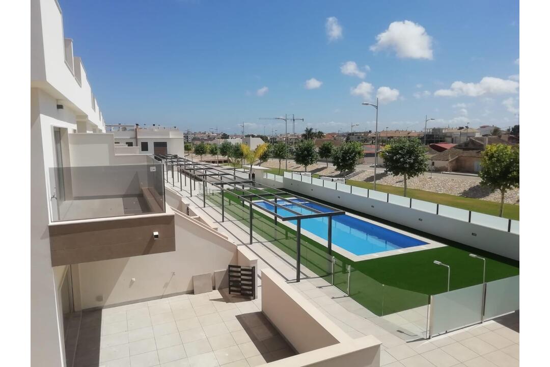 NEW BUILD RESIDENTIAL OF BUNGALOW APARTMENTS IN PILAR DE LA HORADADA New Build residential of modern bungalow apartments in Pilar de la Horadada. New Build bungalows has 2 bedrooms, 2 bathrooms, open plan kitchen with spacious living room, fitted wardrobes, terrace. Ground floor bungalows with private garden and top floor bungalows with private solarium All properties have a private parking space and storage. Pilar de la Horadada is a typical Spanish village in the most southern part of the Costa Blanca. The large main street has supermarkets, lots of shops, restaurants and bars and some lovely squares. The beautiful beaches of Torre de la Horadada and Mil Palmeras with fine sand promenade is just 5 minutes away. The airports of Corvera (Murcia) and Alicante are respectively 40 and 55 minutes away