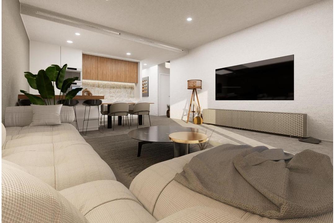 NEW BUILD BUNGALOWS IN PILAR DE LA HORADADA New Build residential complex of bungalow apartments in Pilar de la Horadada. The project will feature 8 bungalows within 2 blocks of 4 units on each one with 2 and 3 bedrooms and 2 fitted bathrooms. All homes will have access to a community pool, and units on the higher floors will come with a solarium. Every aspect has been designed with practicality in mind, focusing on the present-day needs of residents. Fully fitted kitchen with white goods, fitted bathrooms, lighting and building wardrobes with drawers. Solarium with Summer kitchen. Residential located in Pilar de la Horadada, surrounded by all the services you need and just a few minutes from the beach. Pilar de la Horadada is a typical Spanish village in the most southern part of the Costa Blanca. The large main street has supermarkets, lots of shops, restaurants and bars and some lovely squares. The beautiful beaches of Torre de la Horadada and Mil Palmeras with fine sand promenade is just 5 minutes away. In Pilar de la Horadada there is also a well-developed cycling and walking path network, and there is also a large offer of various sports activities. Lo Romero 18 hole golf course is just a short drive from town. The airports of Corvera (Murcia) and Alicante are respectively 40 and 55 minutes away.