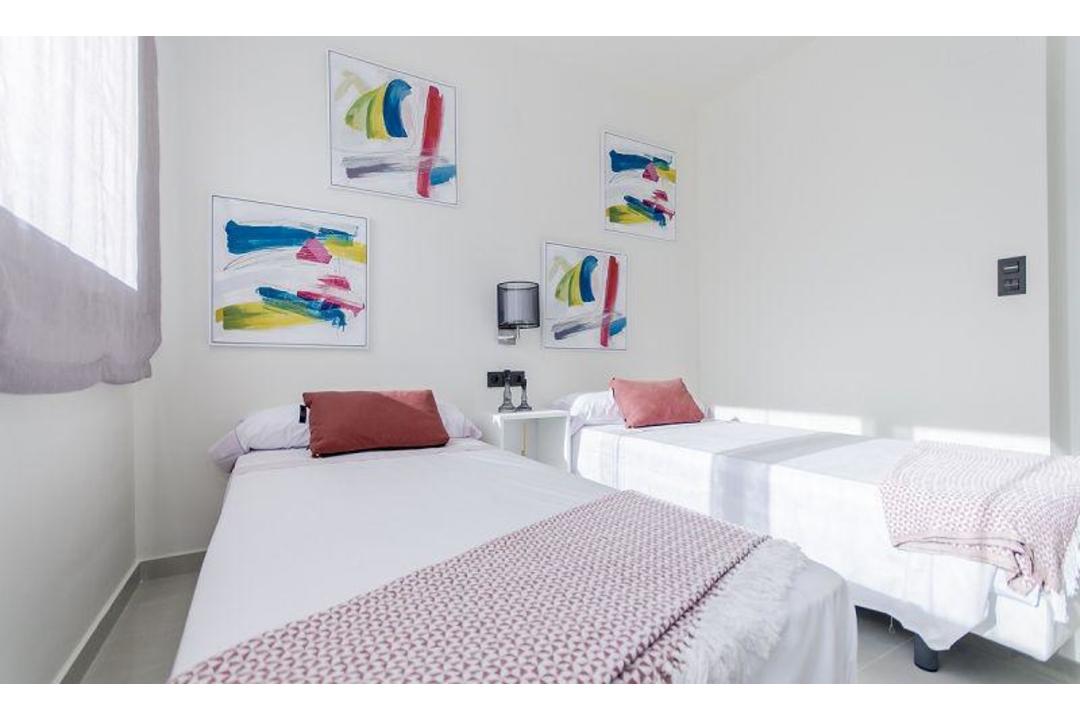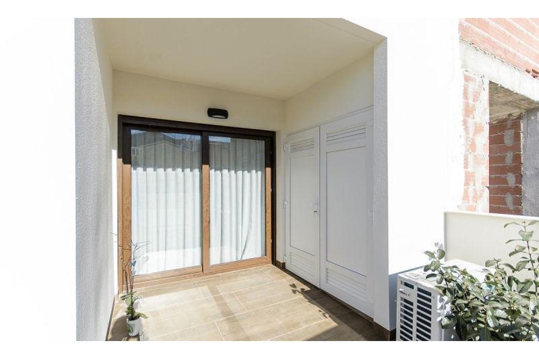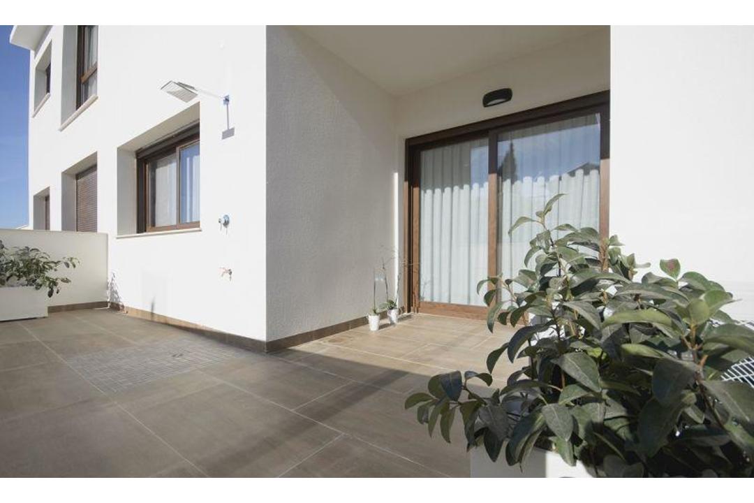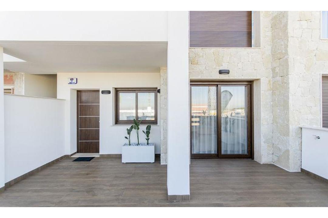 BUNGALOW ON THE COAST, PERFECT TO LIVE Ground floor bungalow with 2 bedrooms with fitted wardrobes, 2 bathrooms, an open 29.50m2 living-kitchen-dining room, a utility room, front terrace and rear garden of a total of 37m2 and a 7m2 porch. Excellent location surrounded by services. The houses are oriented towards the large community area, which has gardens and two swimming pools. The house located in a privileged location with a relaxed atmosphere, close to amenities and services that include supermarkets, banks, pharmacies, restaurants and Torrevieja Hospital. Ideal place to live all year round. This location is 3.5 km from the beach, 55 km from Alicante Airport, 10 km from the Golf Course.