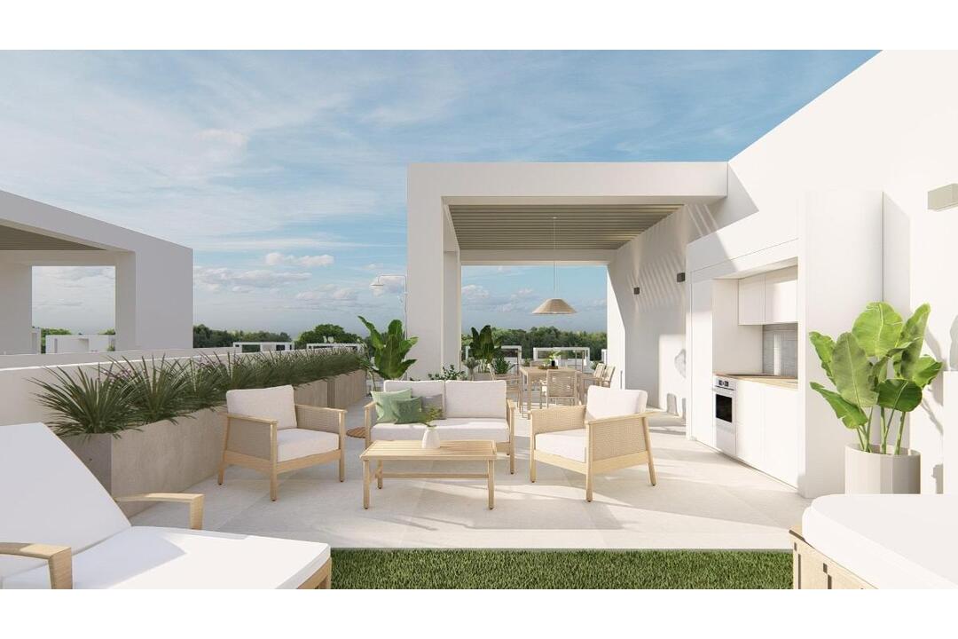New Build Resort Apartments at La Serena Golf-Los Alcazares Near the Beach Modern Golf Front Living on the Costa Calida Discover this exclusive new build residential resort located at La Serena Golf in Los Alcazares. This contemporary development features 66 stylish apartments with 2 or 3 bedrooms and 2 bathrooms, one of them en suite, designed to offer comfort, elegance and an exceptional Mediterranean lifestyle just 300 meters from the Mar Menor. Los Alcazares is a charming coastal town known for its relaxed atmosphere, sandy beaches and long seaside promenade. With more than 300 days of sunshine per year, the area offers a perfect environment for outdoor living, water sports and golf. The town also provides a wide selection of restaurants, shops, marinas and sports facilities, making it a highly desirable destination for both permanent residence and holiday homes. Apartments with Terraces, Gardens and Private Solariums The residential complex offers several property types to suit different lifestyles. Buyers can choose between ground floor apartments with private gardens, middle floor homes with spacious terraces or penthouses with terraces and large rooftop solariums. The solariums include an outdoor shower and offer the option to add a summer kitchen and private jacuzzi, creating an ideal space for relaxation and entertaining while enjoying open views of the golf course and surrounding landscape. Each home has been designed with bright interiors and open plan living spaces that connect seamlessly with the outdoor areas. Resort Style Amenities and Exceptional Communal Areas One of the most distinctive features of this development is its resort style concept. Residents can enjoy a spectacular lagoon style swimming pool of approximately 190 m2 with beach style access and relaxing areas with Balinese beds. Additional communal facilities include landscaped gardens, a spa area, gym and sauna located in the basement level. The complex also offers a children playground, two petanque courts and communal restrooms near the pool area, creating a welcoming environment for residents and guests. Quality Finishes and Modern Features The apartments are built with modern materials and high quality specifications designed for comfort and style. Fully equipped kitchen with white glass finish appliances Bathrooms with vanity units, shower screens and backlit mirrors Motorized window shutters Basic lighting package Fully installed ducted air conditioning Underground parking space for each property Underground bicycle parking and optional storage rooms Prime Location Close to Beach and Golf Mar Menor beach 0.3 km La Serena Golf next to the development Los Alcazares town center 2 km Cartagena 22 km Murcia 40 km Region de Murcia International Airport 30 km Alicante Elche Airport 90 km The calm and shallow waters of the Mar Menor are ideal for swimming, sailing and paddle surfing throughout the year. Secure Your Home at La Serena Golf Resort These modern apartments combine beachside living, golf views from most units and resort style amenities in one of the most attractive areas of the Costa Calida. Contact us today to receive more information or arrange a visit and secure your new home in La Serena Golf-Los Alcazares.