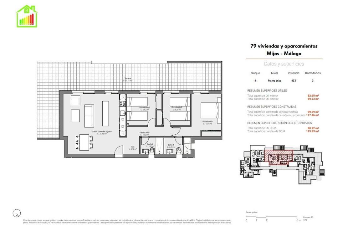 Luxury Apartments and Penthouses in La Cala de Mijas Exclusive Residential Complex in a Prime Location Discover this new-build residential development featuring 79 bright and spacious apartments and penthouses with 2 and 3 bedrooms, located just 3 minutes from La Cala de Mijas and 5 minutes from La Cala Golf Resort. Ideally situated between Fuengirola and Marbella, this complex offers a perfect balance of tranquility and accessibility, with Mlaga International Airport only 25-30 minutes away. Modern Homes with Exceptional Features Each apartment is designed for maximum comfort and energy efficiency, featuring: 2 bathrooms and generous built-in wardrobes. Fully equipped kitchens with Bosch appliances. Private parking space included. Secure gated community with separate entrances for vehicles and pedestrians. Low-emissivity double glazing (Guardian Sun) for optimal energy savings. Motorized blinds in the living room and bedrooms. Photovoltaic solar panels for communal energy efficiency. Aerothermal hot water system for high energy efficiency. Ducted air conditioning system (hot and cold) fully installed. A Home for Every Lifestyle This development offers various apartment layouts, allowing buyers to choose the home that best fits their needs: Ground floor apartments with private gardens. Middle-floor apartments with large terraces. Penthouses with expansive 80 m terraces, some with private solariums for breathtaking views. All homes enjoy afternoon sun and stunning views of the Mijas mountains and landscaped community gardens, ideal for a peaceful walk or a bike ride to the village. Unbeatable Amenities and Prime Location This residential complex offers exceptional community facilities, including: Swimming pools for residents. Childrens play area. Proximity to golf courses such as La Noria Golf and Lauro Golf. Easy access to the A-7 motorway, connecting you quickly to the entire Costa del Sol. Key Distances to Nearby Attractions La Cala de Mijas Beach 3 km. La Cala Golf Resort 5 minutes. Fuengirola 10 minutes. Marbella 20 minutes. Puerto Bans 25 minutes. Mlaga International Airport 30 km (25-30 minutes). Mlaga City Center and Train Station 35 minutes. Live the Mediterranean Lifestyle La Cala de Mijas is a thriving coastal town offering 8 km of pristine beaches, marinas, golf courses, and an extensive gastronomic scene. From beachfront chiringuitos and tapas bars to Michelin-starred restaurants, the area caters to all tastes. With 320 days of sunshine per year and a mild Mediterranean climate, this development offers an unparalleled lifestyle in one of Spains most desirable locations. Secure your dream home in La Cala de Mijas today! Contact us for more details or to schedule a visit.