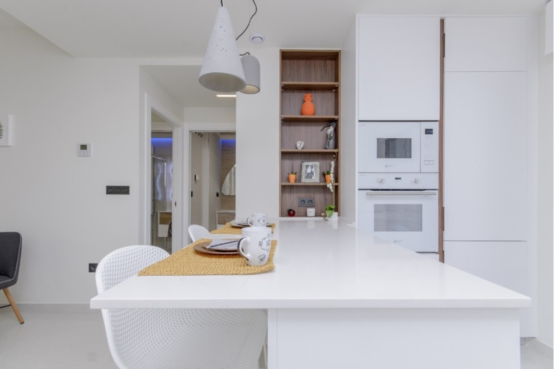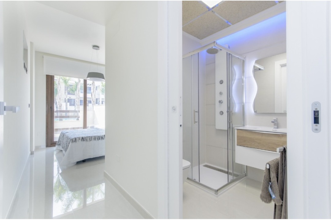 The new modern development is located in a quiet area of Los Balcones close to the salt lakes. The complex offers a total of 98 apartments - the ground floor apartments have two private terraces (one facing the pool) and the upper floor apartments have a private solarium. There are 2 or 3 bedrooms, 2 bathrooms, kitchen and living/dining room. The complex has two semi-Olympic swimming pools, green areas and garages with storage rooms. The apartments are designed for everyone, for those who want to rest quietly by the pool, spend a luxury holiday and enjoy natural views, or for those who like to go out, enjoy gastronomy and leisure in shopping centers. It is located just 10 minutes from the largest shopping center La Zenia Boulevard and the beach.