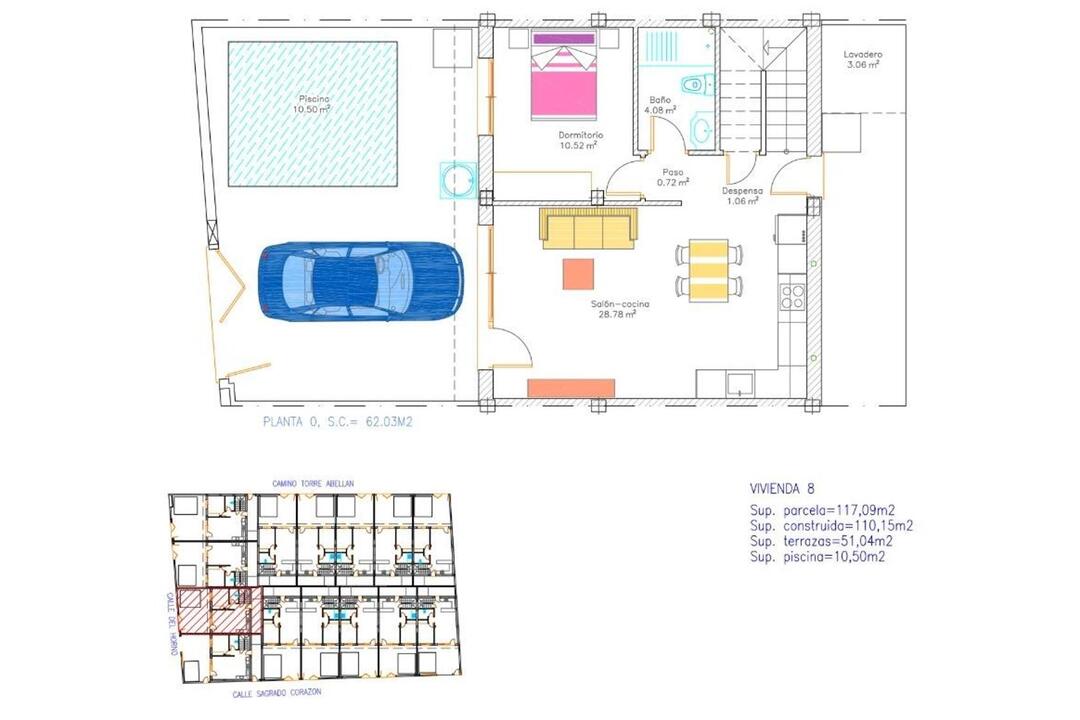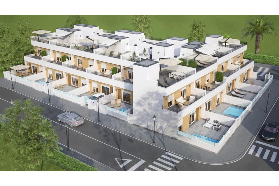 NEW BUILD TOWNHOUSES IN AVILESES Residencial complex of 14 townhouses in Avileses, Murcia. Townhouses have different terraced areas and large solarium, allowing you to enjoy all hours of sunshine every day of the year, with private swimming pool and parking on the plot . Each property has 3 bedrooms and 2 bathrooms. The properties have been designed on three levels with a contemporary style and open planned concept, comprising a fully-fitted kitchen and lounge-dining room. The properties will meet the highest standards and will be equipped with: Private pool with sher. Kitchen completely furnished and equipped with Balay electrical appliances: ceramic hob, oven and microwave on top, extractor fan, integrated fridge and dishwasher. Fully fitted bathrooms with: suspended toilet, vanity unit, mirror and rainfall shower column. Lined wardrobes with drawers. Interior lighting in kitchen, living room, hallway and bathrooms with led spotlights. Wall integrated led spotlights at the garden and solarium. Pre-installation for air conditioning. The development is located in Avileses (Murcia), surrounded by all services and sports facilities, near several Golf Courses such as La Torre Golf and Hacienda Riquelme, plus being 20 minute drive to Murcia airport and 15 minute far from Mar Menor and Mediterranean beaches.