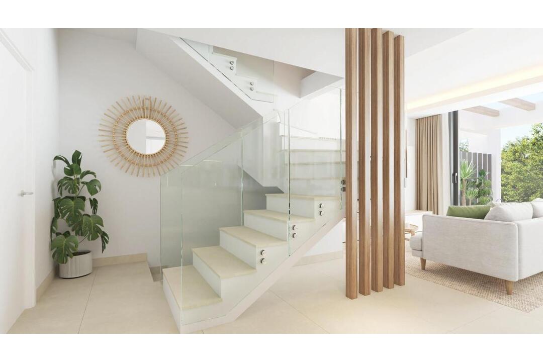 New Build Townhouses in El Chaparral Mijas Modern Living Near the Sea Exclusive Residential Development in El Chaparral Mijas Welcome to this boutique new construction project located in the peaceful pine covered hills of El Chaparral Mijas. This exclusive residential complex consists of only 22 contemporary three bedroom townhouses designed to offer privacy comfort and a refined Mediterranean lifestyle. El Chaparral is a highly regarded residential area known for its natural surroundings proximity to the coast and easy access to key destinations along the Costa del Sol. Contemporary Homes with Flexible Layouts The development offers a selection of townhouses and corner units carefully designed to maximize light space and privacy. Each home is distributed over two main floors plus a private rooftop solarium. On the ground floor you will find an open plan living and dining area with integrated kitchen, laundry room, guest toilet and direct access to the terrace and private garden. The upper floor features three double bedrooms and two bathrooms including a master bedroom with en suite bathroom. Some units include an underground level that can be customized as a games room, home gym or private cinema room depending on your lifestyle needs. Parking is included either open air or underground depending on the property type. Private Solarium with Sea Views The rooftop solarium provides an ideal space to enjoy the Mediterranean climate and open sea views. This area offers the option to install a plunge pool and a summer kitchen creating a perfect setting for relaxation and entertaining. High Quality Specifications and Modern Comfort All homes are built with premium finishes and modern technology. Features include fully installed air conditioning, heating by aerothermal system and fully equipped kitchens with high end Siemens appliances. Floor to ceiling glass windows enhance natural light and create a seamless connection between indoor and outdoor living areas. The orientation of each home has been carefully planned to ensure privacy and optimal use of Mediterranean light. Resort Style Communal Areas Residents can enjoy a complete leisure area designed for wellbeing and relaxation. Facilities include a fully equipped gym, sauna and jacuzzi. Outdoors, the communal swimming pool and children pool are surrounded by tropical gardens offering a calm and family friendly environment. Prime Location Near Golf Beaches and Towns El Chaparral Golf Club is just moments away making this an excellent choice for golf lovers. The sandy beaches of Mijas Costa are approximately 0.8 km away and easily accessible on foot. La Cala de Mijas with its restaurants shops and beach promenade is nearby while Fuengirola Marbella and Puerto Banus are all within a short drive. Key Distances to Points of Interest Beach of Mijas Costa: 0.8 km El Chaparral Golf Club: 1 km La Cala de Mijas: 3 km Fuengirola: 6 km Marbella: 20 km Puerto Banus marina: 22 km Malaga Airport: 30 km Your New Home on the Costa del Sol Enjoy tranquillity design and a prime coastal location in one of the most attractive areas of Mijas. Contact us today to receive more information or to arrange a private viewing of these exclusive new build townhouses.