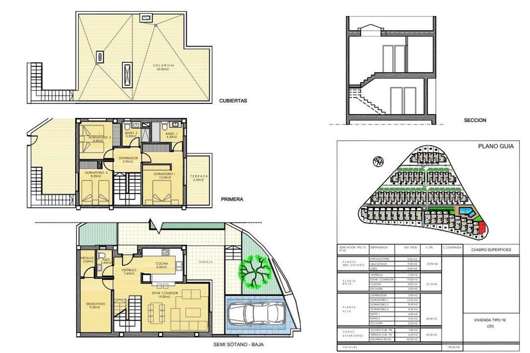 NEW BUILD TOWNHOUSES IN MONFORTE DEL CID New Build development of 54 townhouses and semi-detached villas in Monforte del Cid. Spacious properties with 3 bedrooms, 2 bathrooms and 1 toilet. All the properties have a private garden on the plot, a solarium area and a parking space. The homes have full aerothermics, a renewable energy system that takes advantage of external environmental energy. Each property has been meticulously designed to provide you with maximum comfort and functionality. In addition, the spacious interiors blend perfectly with the outdoor areas. Imagine relaxing on your own terrace while admiring the golf course and enjoying the tranquillity you deserve. Residents of this development will have exclusive access to a wide range of first class amenities. Enjoy refreshing dips in the communal swimming pool, keep your body in shape in the fully-equipped gymnasium, and enjoy a refreshing swim. Immerse yourself in a luxury lifestyle and enjoy the serenity that only Alenda Golf can offer you. These modern and stylish bungalows are strategically located in a stunning natural setting, surrounded by lush vegetation and with panoramic views of the golf course. Private urbanisation close to the main cities of the province of Alicante, 15 minutes drive from Elche and Alicante, as well as the airport and the best beaches. Development is located in a peaceful setting close to the Alenda Golf Course in Monforte del Cid.