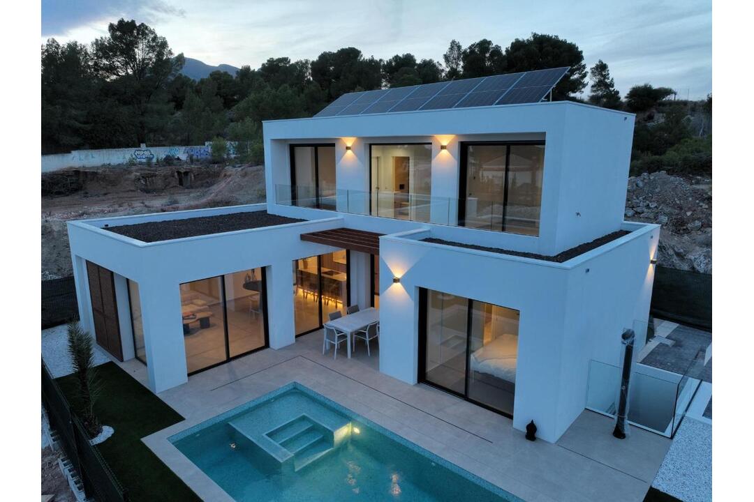 NEW BUILD VILLAS IN ALFAZ DEL PI New Build private urbanization of 12 villas with their own swimming pool and garden, located in one of the most exclusive areas of the Costa Blanca, Alfaz del P. New Build exclusive development that offers you a unique, familiar and natural environment in a privileged area close to all the necessary services to offer you tranquility and wellbeing. The unique design of its wooden structure, with straight, Mediterranean lines, gives it the warmth and harmony needed to make you feel part of nature while optimizing resources, making the villas more sustainable and efficient spaces. One of our guidelines when creating our development was the integration of our villas in nature, taking into account the surrounding green area, with the intention of increasing your quality of life and maximizing the positive influence on it. Houses designed taking into account the smallest details, its wooden shell, its bioclimatic pergola, the solar panel system and the efficient and stylish mallorquinas offer you the most exclusive option for sustainable housing. Open spaces full of light, great amplitude and no visual barriers, providing a sensation of infinite space. Large windows with direct access to the pool and garden area. The spacious living room with open kitchen makes it the ideal place to share with family and friends. High-quality kitchen units with porcelain worktops and highly energy-efficient appliances. Designed with the aim of providing the maximum harmony and balance necessary for a perfect recovery of both body and mind. With large floor-to-ceiling windows, the master bedroom has direct access to the swimming pool and garden area, which provide the extra comfort and relaxation so necessary for good rest. The bedrooms on the upper floor of the villa have been designed to maximize the astonishing views of the Mediterranean Sea and the beautiful Sierra Helada. Designed to create refuge spaces. The natural and warm tones are the protagonists, providing a sense of purity in the environment, optimising moments of enjoyment and relaxation and disconnection from the outside world. The Italian shower, the taps with water consumption reduction system, the furniture with built-in washbasins and the suspended sanitaryware make up a functional space positioning us at the forefront of the sector. Unique and innovative project based on minimum environmental impact promoting lower CO2 emissions in its construction, minimum energy consumption and a more sustainable and efficient use of resources. Project takes an important step towards environmental awareness. The wood used in the whole shell of our villas comes from forests whose logging is authorized and ensures reforestation, sustainability and protection of biodiversity. The use of this material in the construction of your new home brings with it a series of advantages that have a direct impact on both your wellbeing and the construction quality. Our homes are highly energy efficient, offering greater thermal and acoustic insulation, while maintaining the quality of the air inside the house and providing ideal natural lighting. The materials used in their construction are of high quality, durable and resistant to fire and humidity. Homes development is located in the well-known Scandinavia area of Alfz del Pi. Just a few kilometers away lies the beach of Albir, where its crystal clear waters and the Sierra Helada with endless routes and activities makes it considered one of the best areas of the Costa Blanca. Very close to the Villas the urban center of Alfaz del P is situated, which meets all the necessary requirements for your new home, such as the extraordinary climate, with more than 300 days of sunshine a year, its gastronomic offer, the quality of its services and the magnificent relationship with the environment. There are also two prestigious Norwegian Schools as well as a Scandinavian club that already exists for half a century.
