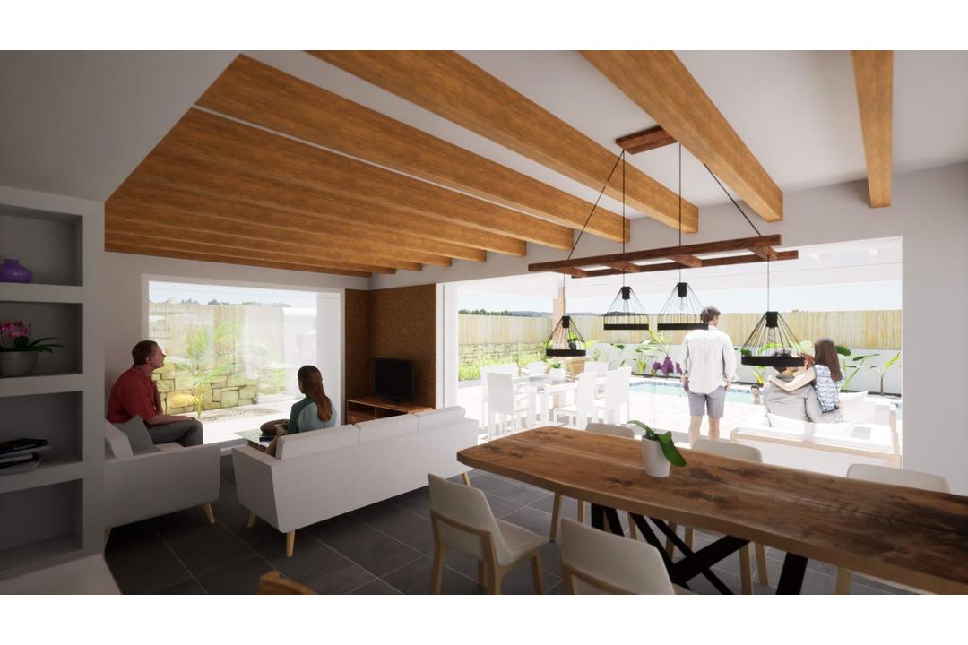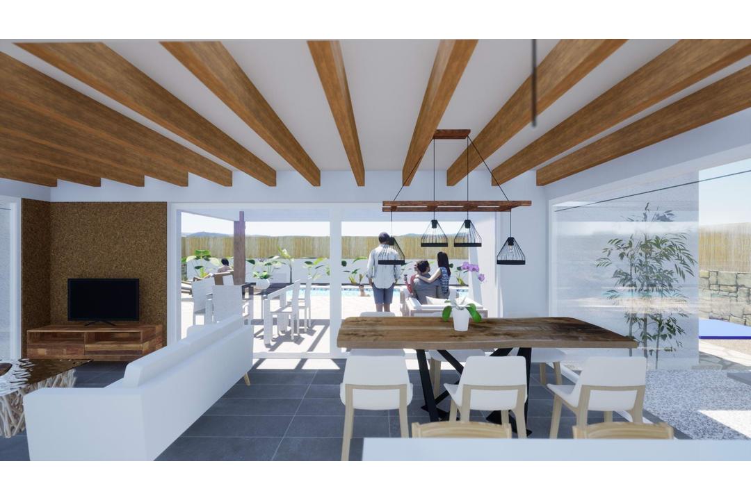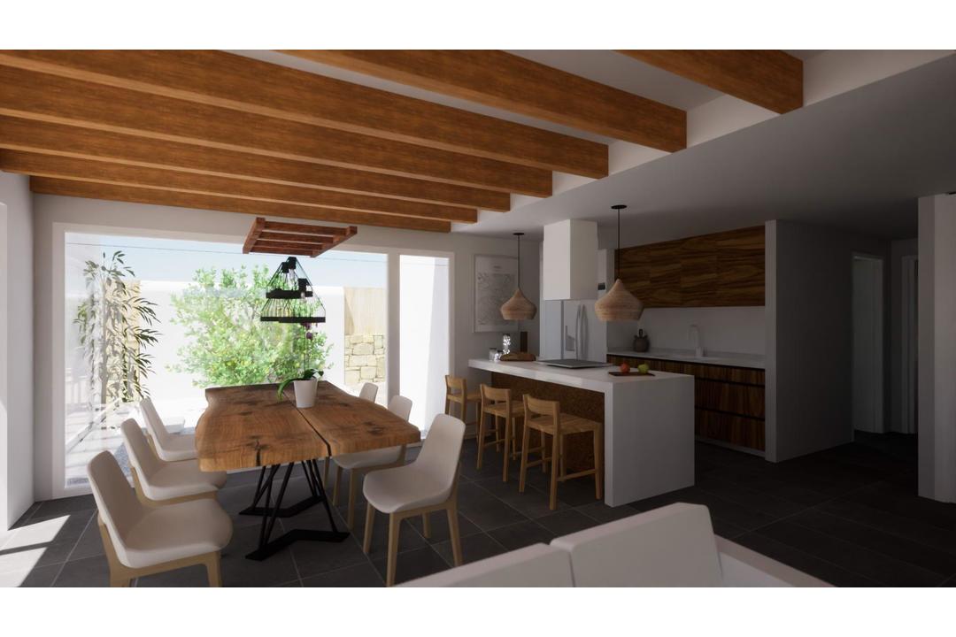 NEW BUILD IBIZA STYLE VILLAS IN ALFAZ DEL PI Fantastic New Build Ibiza style villas in Alfaz del Pi, close to the El Arabi urbanization. Connected to the urban centre of Alfaz del Pi (shops, sports centre, schools) and a few minutes from El Albir with easy connection. The Ibiza house is integrated into the plot, creating its own characteristic spaces that start from the interior and project to an exterior where plants are strategically placed in the trajectory of every interior window, and in combination with other elements such as different types of pavement and gravel, and perimeter wall materials (landscape project). Living room with an open kitchen, a wonderful large sliding window that gets hidden in the cavity of the wall, faking a seamless transition from indoor to outdoor, with a prgola as buffer space in between the pool terrace, an area for maximum outdoor enjoyment. It has a small storage/laundry room next to the kitchen. And another storage room with exterior access, which could be used for other uses, such as a machine room or an exterior bathroom. Villas has 3 bedrooms and 2 bathrooms (1 en suite). Master bedroom with en-suite bathroom and walk-in closets. Materials and many items can be customized, the plot allows for extra spaces, even a built garage. Alfaz del Pi located between Altea and Benidorm on the northern Costa Blanca in Spain. Alfaz del Pi is very close to Albir with famous for its beautiful sandy beach, the Playa de Rac de lAlbir, it has received many times over the European Union Blue Ribbon award. Alicante airport located 45 minutes drive away.