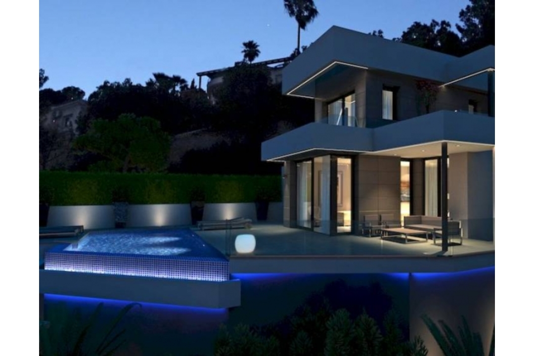 New build villa for sale This new modern luxury villa currently under construction is situated within an elevated privileged area which has recently been developed with high tech properties, most of them with fantastic views of the Mediterranean sea. The property is set over two levels, access is on level with the parking through the top floor where we find 1 double guest bedroom with en-suite bathroom and the large master suite with dressing area, en-suite bathroom and terrace. On the lower level we find an ample living/dining room with open plan kitchen, guest cloak room and a large en-suite bedroom. From the main living level we access a big terrace with a private infinity pool overlooking the sea. The property boasts top quality finishings, air-conditioning hot and cold, underfloor heating, electric blinds, covered parking and breathtaking sea views.