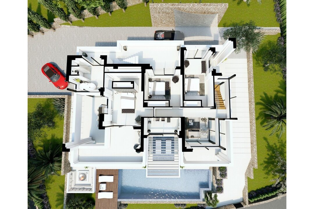NEW BUILD VILLA IN BENNISA Luxury New Build villa for sale in Benissa, Costa Blanca. Luxury villa in Benissa, modern architecture with infinity pool 13x4,5m. This villa is built on a large flat plot with sea views. It has 4 bedrooms and 4 bathrooms, solarium of 197m2, basement of 205m2. It also has outdoor parking for 2 vehicles, with printed concrete pavement, covered with a design sail awning. From the car park, access to the ground floor is through an entrance door to the property with fixed side security glass. From there we go to the large living room with double height in which is the design staircase made of steel beam, with floating wooden steps and glass railing that gives access to the first floor. On the ground floor there is a guest toilet, a large laundry room with access to the outside terrace, a bedroom with fitted wardrobes and en suite bathroom and a large closed kitchen. The whole ground floor has floor to ceiling windows that give a lot of light and access to large terraces and the swimming pool. On the first floor there are 3 bedrooms and 2 bathrooms, all with access to terraces, one of them with external stairs leading up to the solarium of 197m2. All bedrooms have build-in wardrobes. From all the rooms on the first floor you have access to a large terrace and garden with spectacular views and infinity pool as well as a chill out area with outdoor fireplace in the garden. The basement has a large open-plan area where you can build a cinema, gym, etc. In the equipment of this villa we highlight the latest technologies installed throughout the house. Such as the home automation system controlled by voice and from the mobile APP for the alarm system. Complete installation of air conditioning ducts. All thes mechanisms necessary for the installation of zoned air conditioning, generated by air technology, on the ground and ground floors. Possibility of connecting Airzone with the home's intelligent system and with Alexa. Installation of electric underfloor heating on ground and first floors. Mechanical ventilation system in bathrooms and kitchen, air renewal and smoke extraction. Domestic hot water generation by means of Aerothermal system, in compact units. Porcelain stoneware tiles throughout the interior of the house. In wet areas such as shower floors, the same will be of the non-slip type. Likewise, non-slip tiles will be laid in exteriors and solarium. In the kitchen, island worktop finished in Silestone in grey tone, with glass panel in the front area of the worktop in matching tones. Fully equipped kitchen from top brand Kchenhouse, Parclanos or similar. Bathrooms fully equipped with high quality fittings. Video intercom. Installation of interior lighting with integrated LED halogens, indirect lighting with LED bars embedded in ceilings and frames, in passageways and other rooms. Connections prepared for the installation of hanging lamps in living room and kitchen. Perimeter exterior lighting consisting of designer LED wall lights on the exterior faade and car park, and floor lighting in terrace and swimming pool areas. Landscaping consisting of natural grass areas and plants native to the region (olive trees, palm trees, orange trees, lemon trees...). Plot fencing made of block wall clad in dry stone masonry. The villa is located in one of the most beautiful residential areas of the Costa Blanca. The towns of Calpe, Benissa and Moraira offer an extraordinarily attractive coastline of great scenic and ecological interest, with a rugged coastline with numerous beaches and hidden coves. Benissa located between Valencia and the city of Alicante. Manises airport in Valencia is an hour away and LAltet airport in Alicante 50 minutes drive away. Both airports are major international airports served by a large number of low-cost airlines.