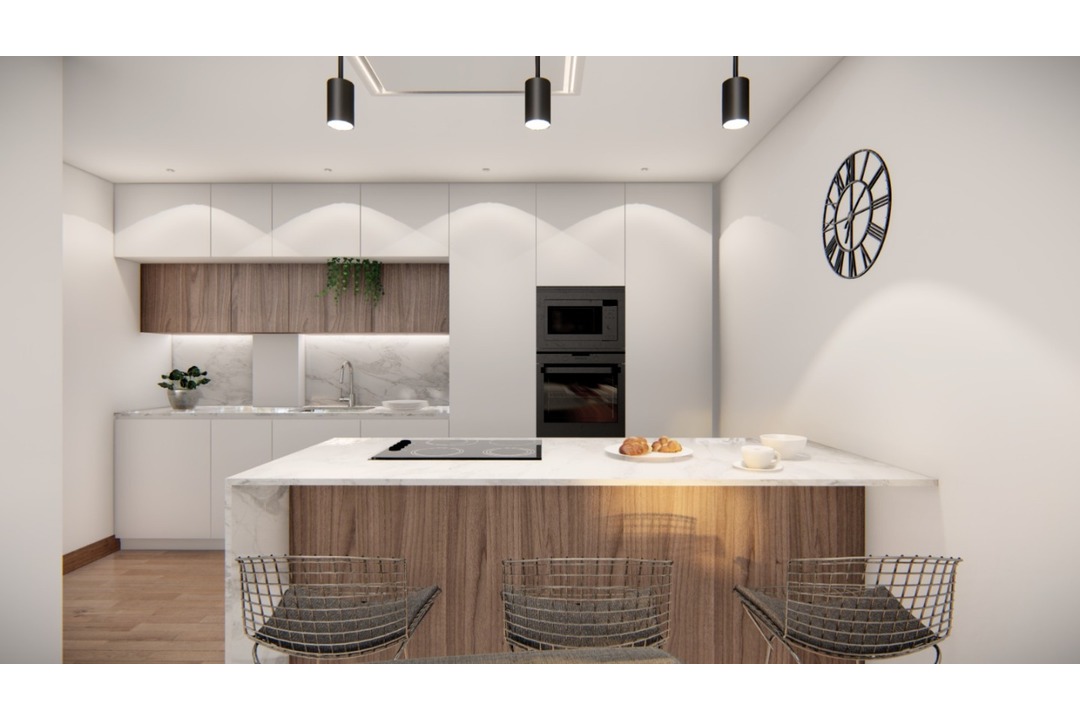 A three bedroom three bathroom penthouse apartment with a large 62m2 rooftop solarium. There are two double bedrooms one with un-suite bathroom, a guest bathroom. A very large open plan kitchen and living area leading onto a nice size terrace. Upstairs you find the master bedroom with en-suite bathroom and walk-in wardrobe. Then you access the large solarium.