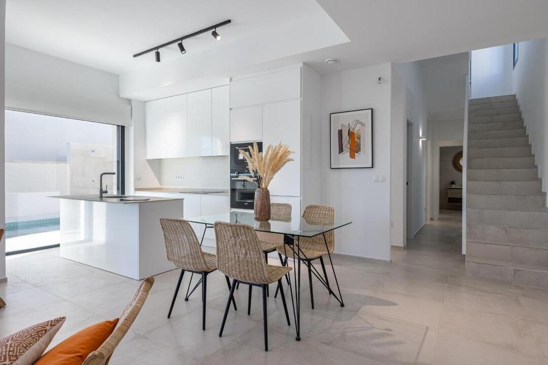 NEW BUILD VILLAS IN FINESTRAT New Build residential of 12 villas in Finestrat, in Sierra Cortina one of the best urbanizations on Costa Blanca. Villas build over 2 floors, has 3 bedrooms, 2 bathrooms, open plan kitchen with lounge, build-in wardrobes, terrace and solarium, private garden with the pool and 2 parking spaces.. Residential located in the Sierra Cortina resort complex, next to two golf courses, theme parks, a large shopping centre and a few minutes from the beaches of Benidorm. Finestrat located in the Marina Baixa region of the Costa Blanca, close to neighbouring Benidorm and about 40 kilometres from the city of Alicante and the international airport. The village is situated on the mountainside of Puig Campana and offers beautiful views of the mountains, the coast and the Mediterranean Sea.
