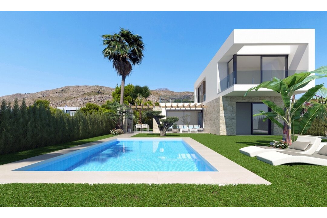 NEW BUILD VILLAS IN FINESTRAT New Build residential of modern villas located in Sierra Cortina, Finestrat. Modern style New Build villas with 3 bedrooms, 3 bathrooms, open plan kitchen, large living room with access to the terrace, private garden with the pool and parking space. Villas has a large terrace with sea and mountain views. Residential located 5 min by car from all the services that Benidorm can offer and in an environment with an average annual temperature of 20C and 300 days of sunshine a year, 44 km away from Alicante airport, 3 km from the sea and 200 meters to the golf.