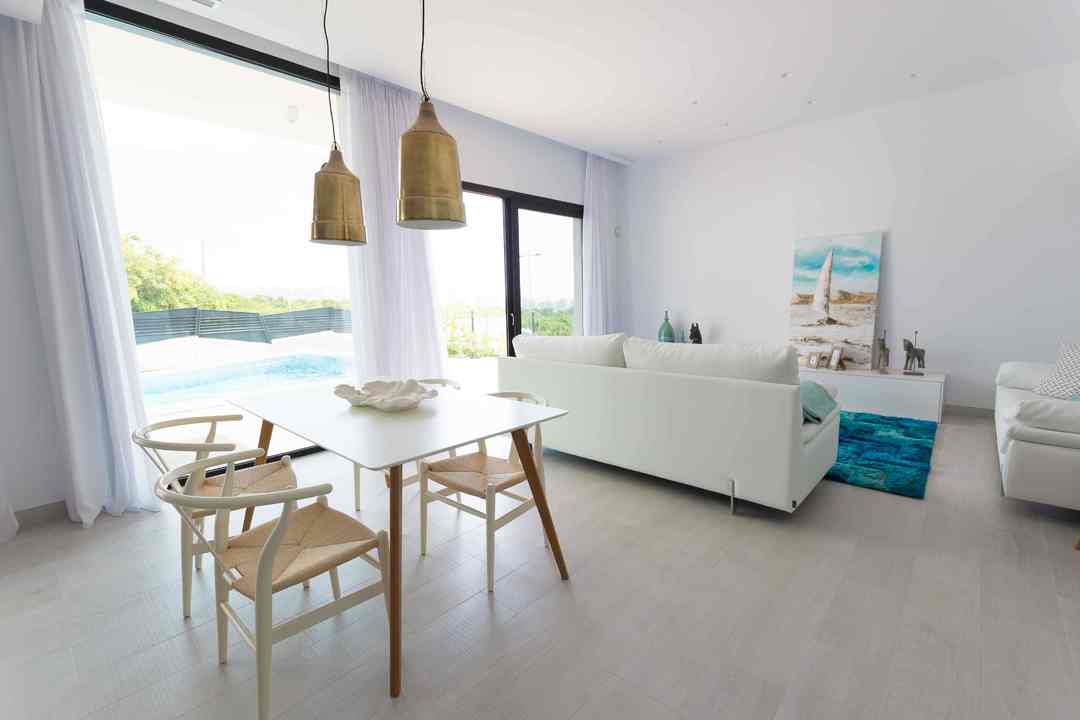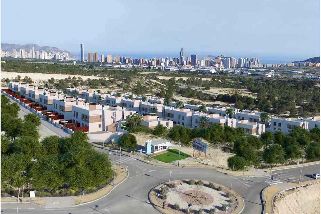 A modern villa designed on one floor. It has a large solarium where you can enjoy panoramic views and take in all day sunshine. The villas sits on plots of up to 364 sqmt, with 3 bedrooms (1 of them en-suite), 2 bathrooms, laundry area, private pool, garden, luxury finishes. There is a 130 metre under build where you can have a games room, cinema room or more bedroom if required. This is a new development of luxury villas and apartments. Spread over more than 23000 sqmt of land. It is located between Finestrat and Benidorm. There are two five star restaurants and 3 golf courses all close by.