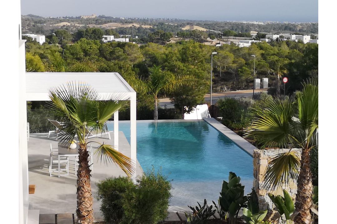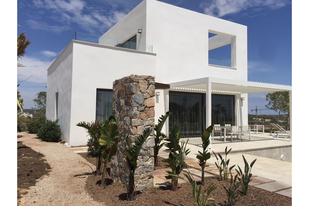 There are 15 new modern villas in a privileged location on the highest spot in the heart of Las Colinas Golf andamp; Country Club and surrounded by nature with superb sea and golf views. The villas stand out for its privacy and exclusivity within the resort. The design and architecture ensures natural light though out the properties. The villas feature an open plan kitchen, dining and living area and two bedrooms with bathroom on the ground floor as well as a large covered terrace and swimming pool on a nice plot. Remote controlled pergola gives shade and more outside space between the villa and infinity private pool 14,5 x 4,5 m and 3,0 x 5,0 m. The properties have floor-to-ceiling windows showcase spectacular unobstructed views. From the first floor the master bedroom with two terraces and absolutely stunning views and own private en-suite bathroom. On the basement level is the parking and storage area. This villa is truly spectacular in every way. The villas come quipped with top of the range materials like oak, marble and slightly glass and stainless steel. The villa is equipped with under floor heating and central air condition controlled by home automation, also remotely through the internet. Las Colinas Golf andamp; Country Club is an exclusive residential complex with low housing density and built around an award winning 18-hole golf course. In a privileged location, Las Colinas sits on a valley surrounded by hills and a Nature reserve of protected land and woodland.