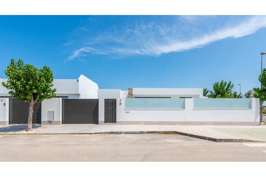 New build villas in Los Alczares New development of villas and townhouses in Serena Golf, Los Alczares. Modern villas with 3 bedrooms, 2 bathrooms and 1 toilet, open plan kitchen with living room, terrace, private garden with swimming pool, parking and solarium. Fully fitted kitchen in white gloss or wood colour. Technological quartz. Stainless steel sink. Induction hob with integrated extractor, oven, microwave, washing machine, integrated fridge, integrated dishwasher. Swimming pool: Dimensions in accordance with the property, with steps, blue stoneware and white LED lighting. Pre-installation for heat pump. La Serena Golf is located in the municipality of Los Alczares, occupying an area of 60 hectares on the edge of the Mar Menor, a perfect natural environment to enjoy the best climate in Europe. Los Alczares is located in the Region of Murcia near the beaches of the Mar Menor, where you can practice various water sports, surrounded by several golf courses. Here you can practice various water sports, surrounded by several golf courses and the city of Cartagena less than 15 minutes by car and 22 km from Murcia airport, having therefore a wide cultural, gastronomic and sporting offer at your fingertips.