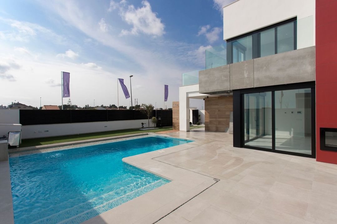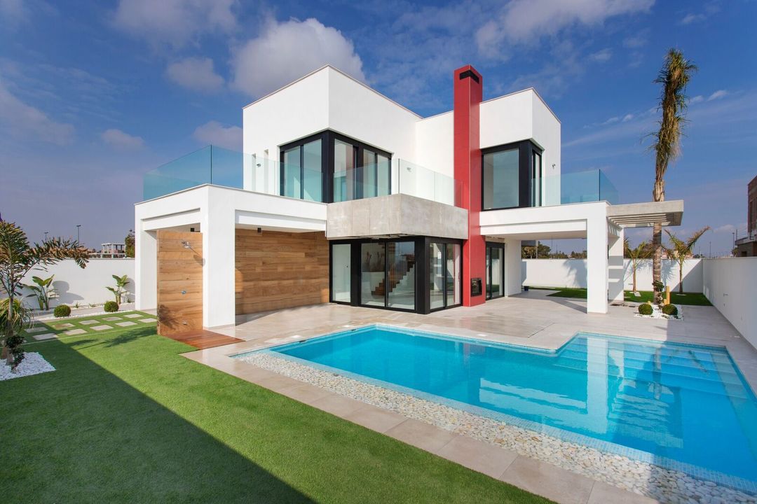 New Modern Villas For Sale with Sea Views New villas with sea views and close to La Serena 18 hole golf course. The villas are finished to a very high standard and come with pre installed home automation system and also outside sound systems for the pool and garden.There is 90m2 of terracing and garage with washing machine and dryer included.