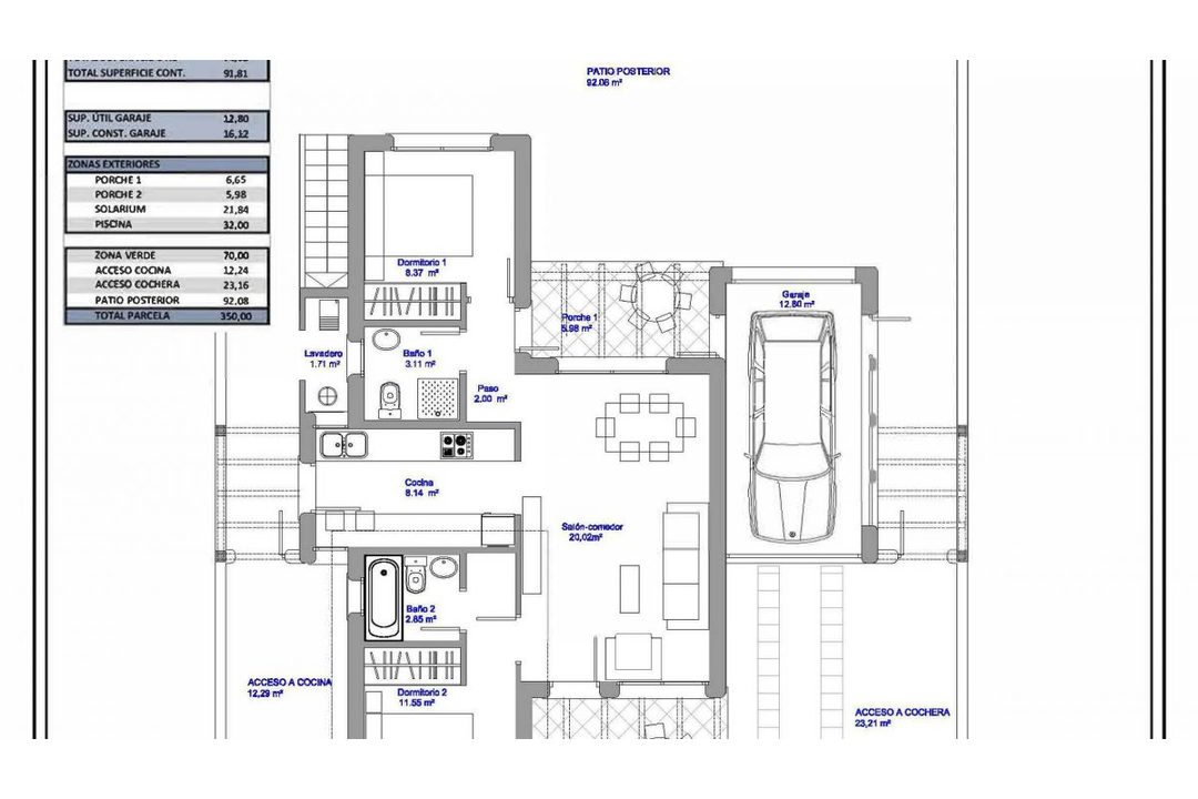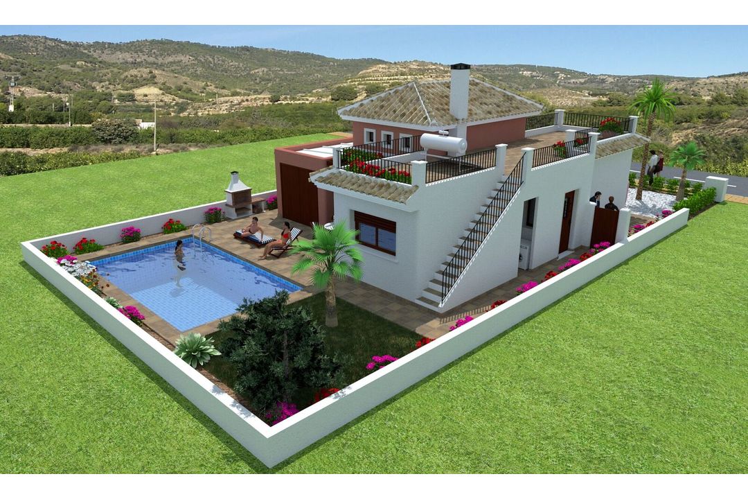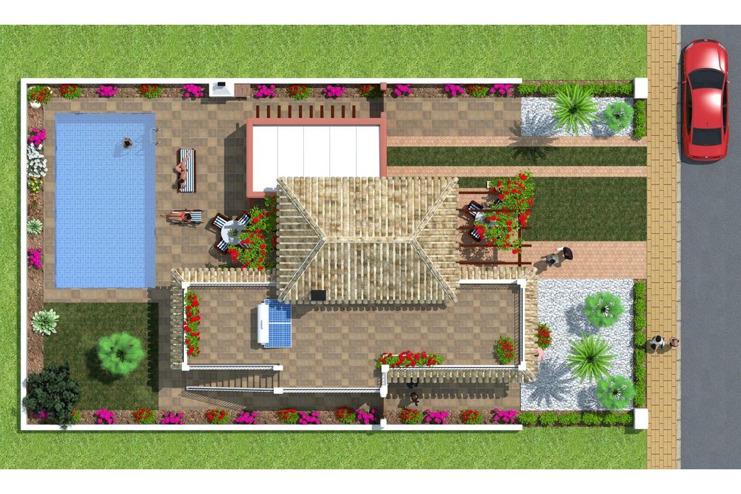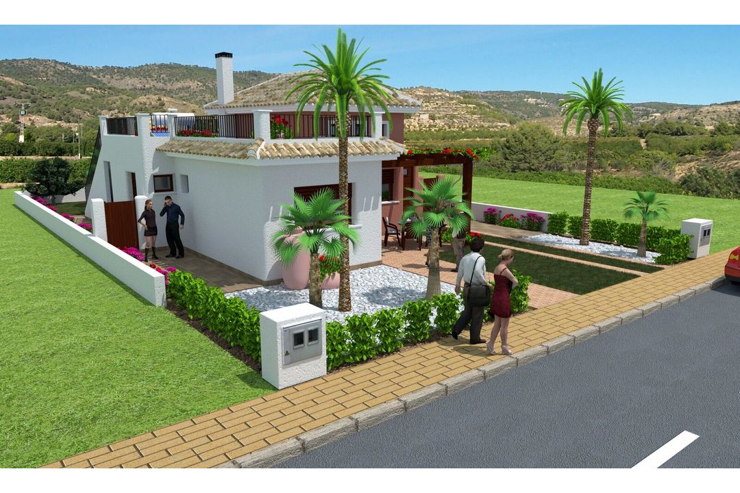 New three bed villas For Sale A very attractive development in prime location close to the sandy beaches of Mar Menor, the town and an 18 hole golf course. The Mediterranean style, independent villas have light, comfortable living areas with views to the garden or pool area (swimming pool optional with prices starting from 13,000).The rooms are spacious with three bedrooms, one with en-suite bathrooms and the other two have a guest showroom. The master bedroom is upstairs and leads onto a large sun terrace. The villas have more than 250 m2 of outdoor living space and good size garage which could be used as a hobby room or studio. The villa has a large, private 350 m2 plot with ample terraces and garden space.