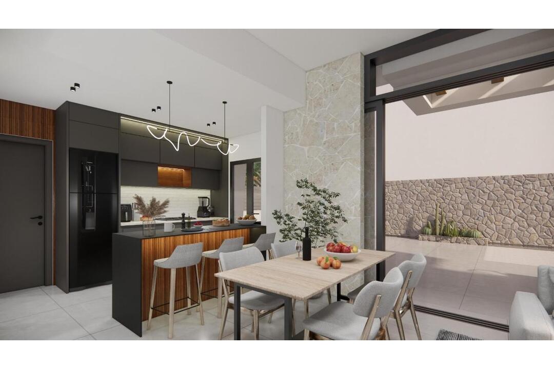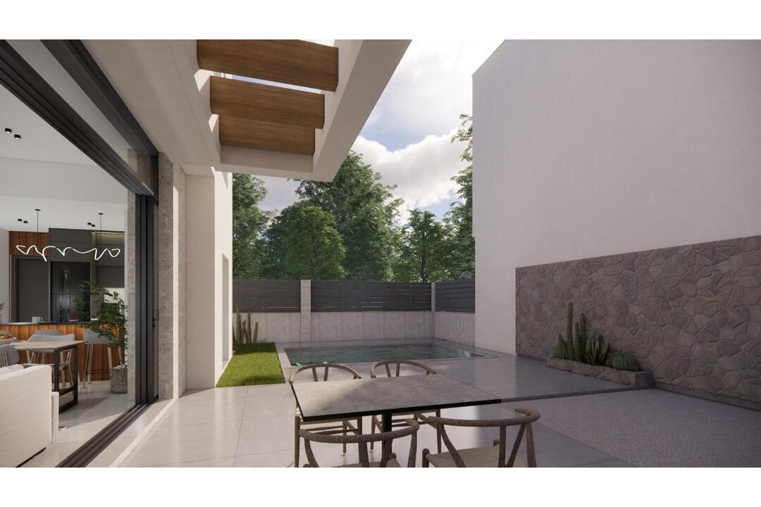 Modern New Build Villas in La Herrada Los Montesinos With Private Pool Exclusive Residential Project in a Peaceful Environment Located in the prestigious La Herrada urbanisation in Los Montesinos, this exclusive development of 16 modern villas offers privacy, comfort and an excellent quality of life. La Herrada is known for its quiet residential atmosphere, its proximity to daily services and its privileged setting between the famous salt lakes of Torrevieja and La Mata. It is an ideal location for those seeking a relaxed and healthy Mediterranean lifestyle in the south of the Costa Blanca. Contemporary Design With Optimised Interior Spaces Each villa has 110 m of well planned living space distributed over two floors, designed to maximise natural light and functionality. Built on plots starting from 185 m, the properties offer generous outdoor areas perfect for sunbathing, entertaining or relaxing by the private pool. Comfortable Layout Across Two Floors The ground floor features an open plan living room with a fully integrated kitchen and direct access to the garden and pool area. This level also includes one bedroom, a full bathroom and a convenient laundry room. On the upper floor, there are two spacious bedrooms, each with its own bathroom, one of them en suite. Both bedrooms enjoy access to a private open terrace of 17 m. For those who want even more outdoor space, there is an optional rooftop solarium available at an additional cost. High Quality Finishes and Modern Features The villas include quality finishes such as bathroom furniture, mirrors, shower screens and underfloor heating in all bathrooms. There is pre installation for ducted air conditioning, a motorised vehicle entrance gate, private parking on the plot and a gated residential access via a private internal street. Prime Location Close to Key Amenities and Attractions Beaches of Guardamar and Torrevieja 9 km La Marquesa Golf, La Finca Golf and Vistabella Golf within 5 km Alicante Airport 29 km Natural parks, salt lakes, cycling routes and hiking trails nearby Live Comfortably in the Heart of the Costa Blanca These new build villas in Los Montesinos offer the perfect combination of modern comfort, natural surroundings and excellent accessibility. Whether you are looking for a permanent residence or a holiday home, this development provides everything you need to enjoy a peaceful and convenient Mediterranean lifestyle. Contact us today to arrange a viewing and secure your new home in La Herrada.