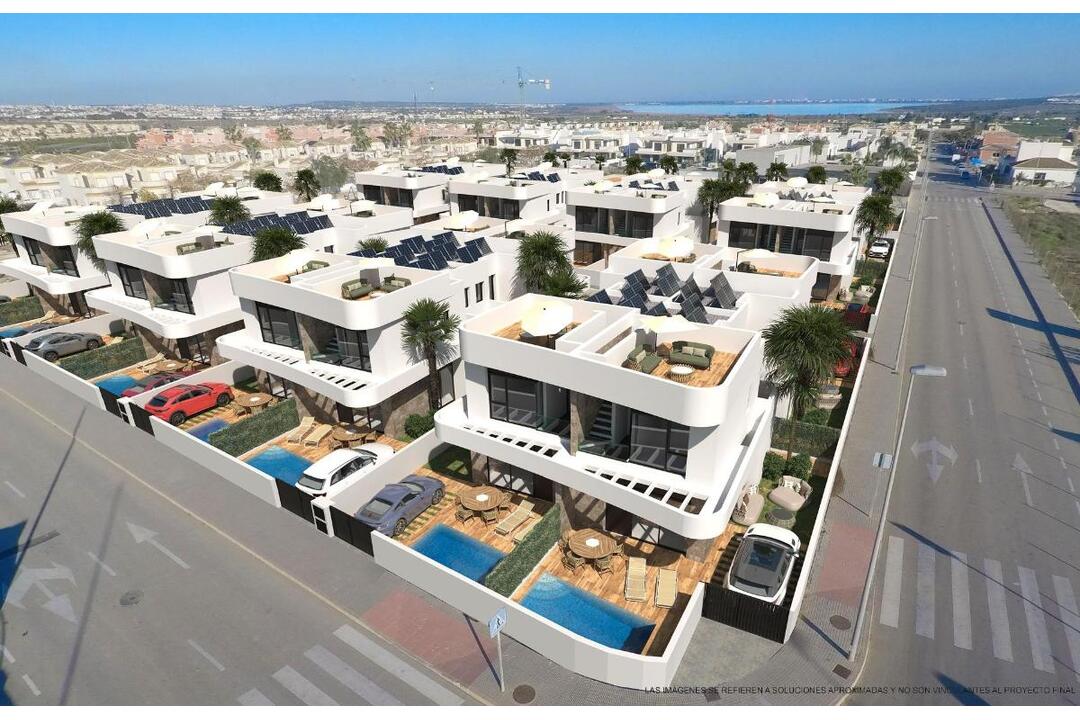 NEW BUILD VILLAS IN LOS MONTESINOS New construction project located in La Herrada (Los Montesinos), in a privileged location close to the best beaches of Guardamar and with all the amenities offered by a large municipality such as Los Montesinos. This project has 32 villas, some semi-detached on 2 floors and others independent on a single floor, which are delivered with the best equipment, including solarium, bath screens, garden finished with artificial grass of the best quality, decorative gardening elements, and pre-installation for solar panels, electrical socket and door motor for vehicles. Villa has 3 bedrooms, 3 bathrooms, open plan kitchen with lounge, fitted wardrobes, terrace. The typical village of Los Montesinos is strategically located 10 minutes drive from the beaches and leisure of Torrevieja (with all the services of a big city: theatre, 2 hospitals, international schools, etc.), several golf courses and with easy access to the A7 motorway to reach Alicante airport in 20 minutes. In the urbanization there are supermarkets and bars for the daily service, being a rural and quiet environment. The climate of this area guarantees 300 days of sunshine a year with an average temperature of 20C, which together with the rich gastronomy and the cultural and sporting offer of its surroundings, make this area an ideal place to establish a second holiday home or a quiet place to live permanently.